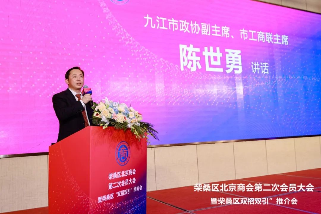 陈世勇主席代表九江市工商联、九江市总商会对柴桑区北京商会第二次会员大会和招商推介会的圆满成功表示祝贺!