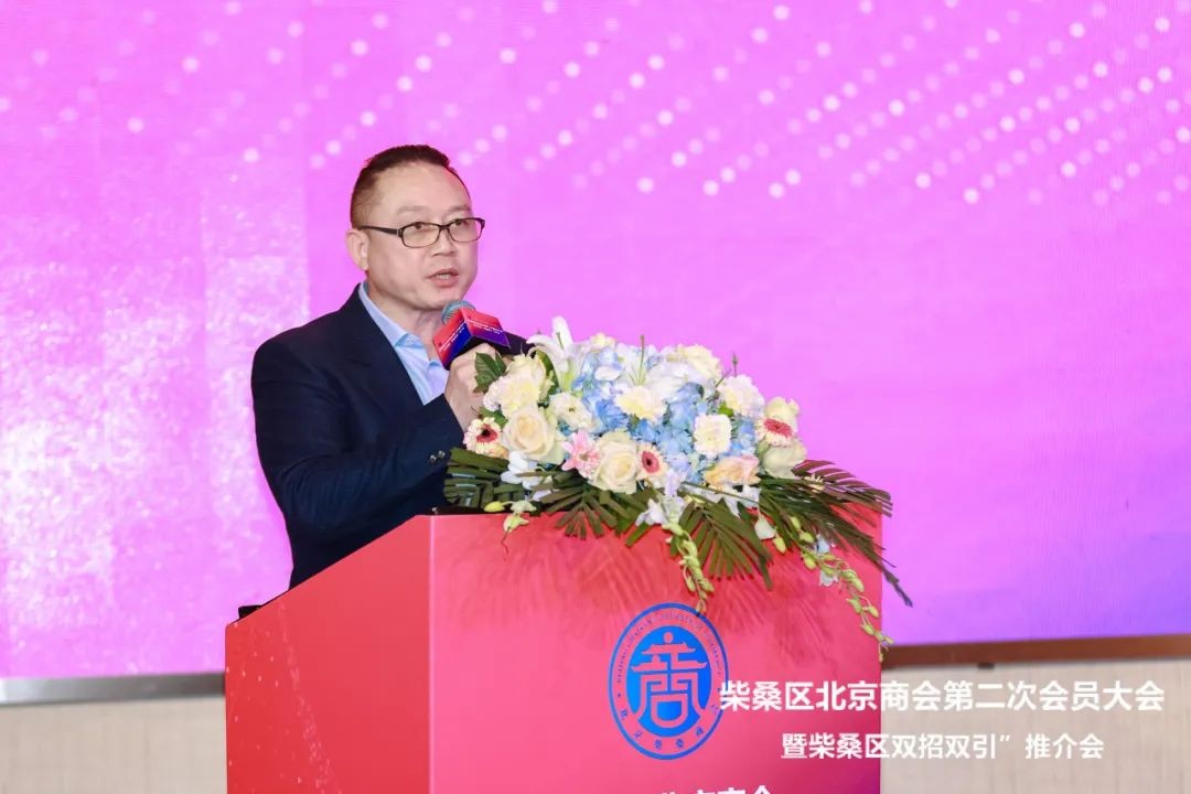 他说,在祖国上下深入学习贯彻全国两会精神之时,在百花争艳的美好时节,非常高兴应邀来北京和大家一起欢聚一堂,共同见证柴桑区北京商会第二届换届选举大会和柴桑区“双招双引”推介会胜利召开的盛况和喜悦。