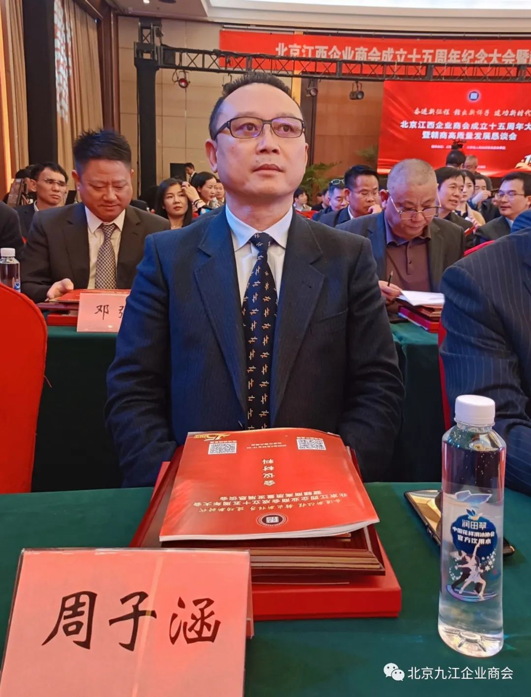 江西省人大代表、江西省工商联(总商会)副会长、北京市朝阳区人大代表、九江市政协常委、九江市工商联副主席、北京江西企业商会常务副会长、北京九江企业商会会长、北京浔阳企业商会会长、北京中天江源控股集团董事长周子涵应邀参会