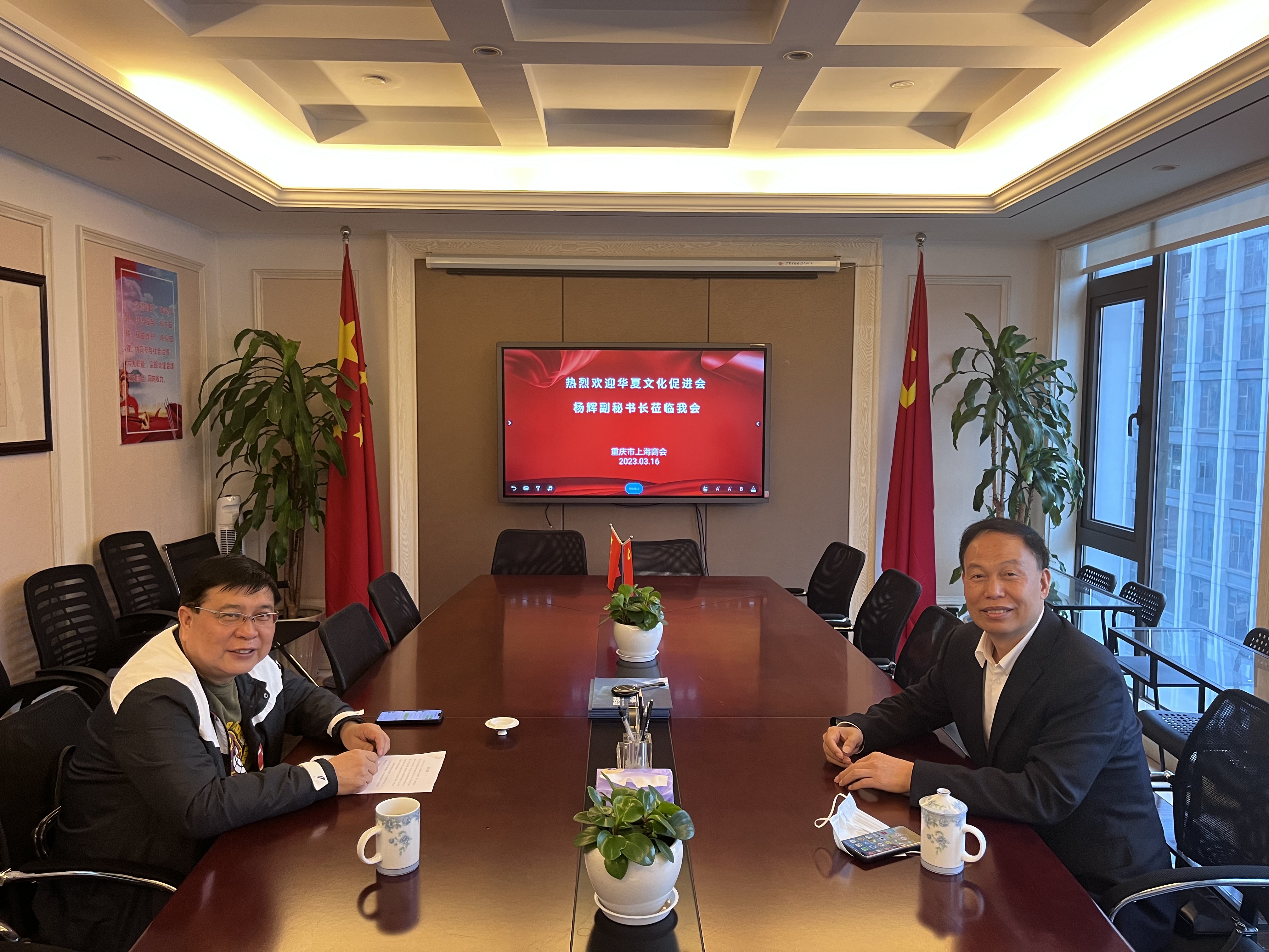 接着,韦根会长接待了华夏文化促进会副秘书长杨辉,双方简要介绍了上海商会、促进会的基本情况。杨副秘书长表示上海商会注重文化建设和传承,形成了“海纳百川、睿智守信、乐善好施、创新卓越”新时代沪商精神和“聚合、无界、共生”核心价值观,有利于传承发扬沪商精神,有利于团结会员企业,值得赞誉,希望今后双方多加强交流合作,共同弘扬华夏文化。韦会长表示欢迎杨副秘书长来访商会,希望今后要加强沟通对接,不断深化合作,创新发展理念,挖掘沪商文化内涵,助力上海商会打造特色文化品牌,推动地沪商文化在重庆大地上枝繁叶茂,助力商会长久健康发展。