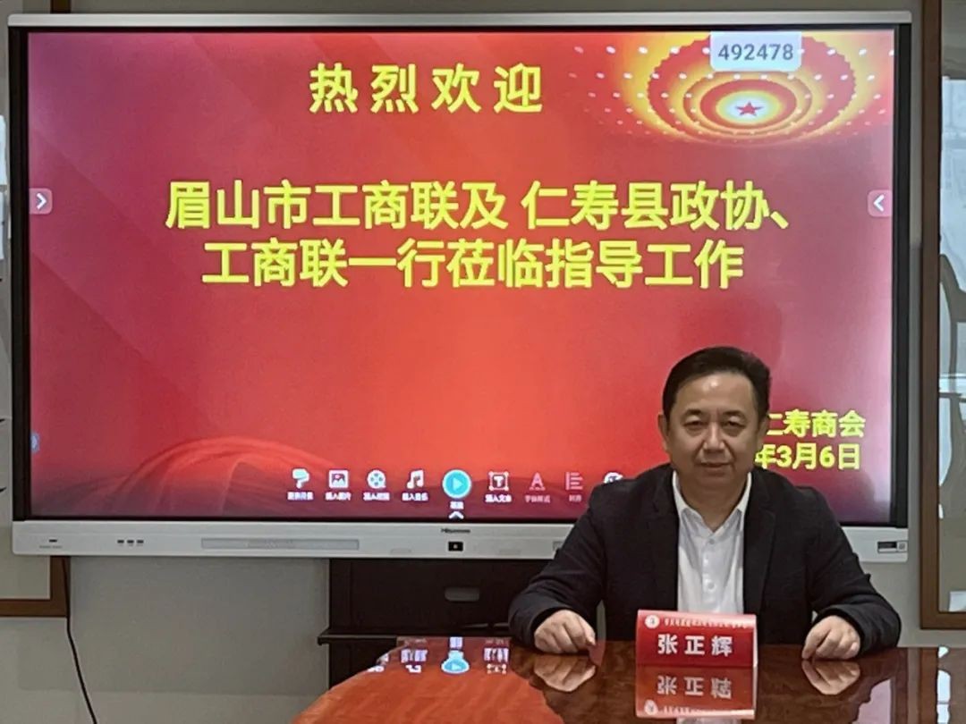 2023年3月6日,眉山市工商联副主席刘前线、眉山市工商联调研员黄锐、仁寿县政协副主席、县工商联主席辜文超等一行莅临重庆市仁寿商会考察调研指导工作。张正辉会长、彭勇书记、刘战修秘书长、副会长胡胜文、黄添、黄勇、徐贤利、周攀、吕建军、理事李永洪、童威及会员代表吴嘉灵、王勇、黄超林、郑兴明、张植元、廖丹艳参加调研工作会。