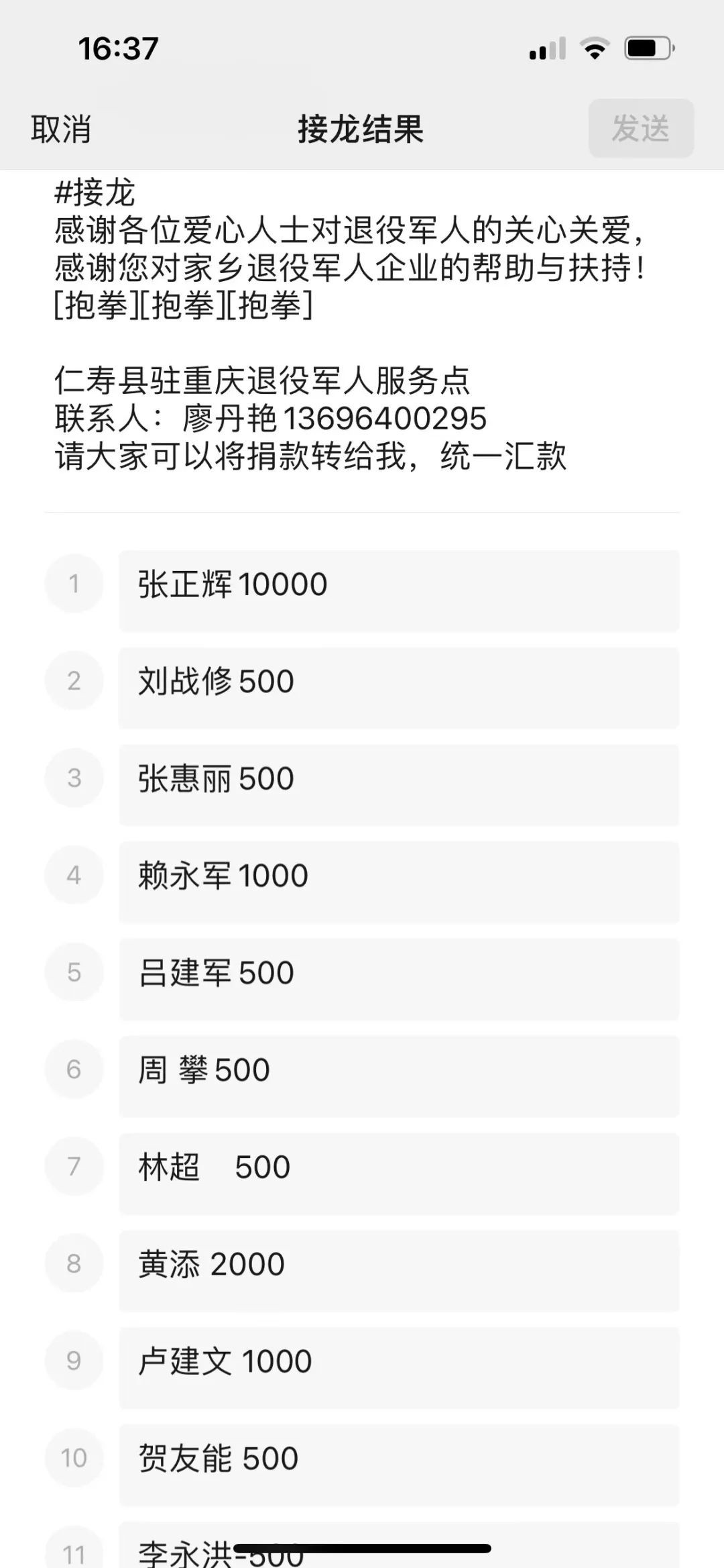 众人拾柴火焰高,此次捐赠活动体现了仁寿在渝儿女的大爱精神和慈善意识及回报社会的责任感,同时给予对家乡退役军人关心关爱,感谢他们为国防和军队现代化建设做出的贡献,帮助退役军人实现创业梦想。