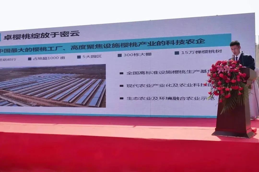 首先由北京祥和源农业科技股份有限公司董事长卓光华致辞。卓樱桃超级智能大棚落成庆典,是由总部基地联盟项目一期、二期、三期组成,该三期项目大棚总建筑面积为10万平米,栽种近10万棵樱桃树。一二三期联盟项目是祥和源与新合伙人合作投建并运营,是卓樱桃第五代技术成果实现规模化量产的重点示范项目。以上三期联盟合作项目的顺利落成标志着祥和源以技术输出为产业高速扩张的发展模式得到了广泛认可,为未来实现万亩樱桃产业带的发展目标打下坚实基础。