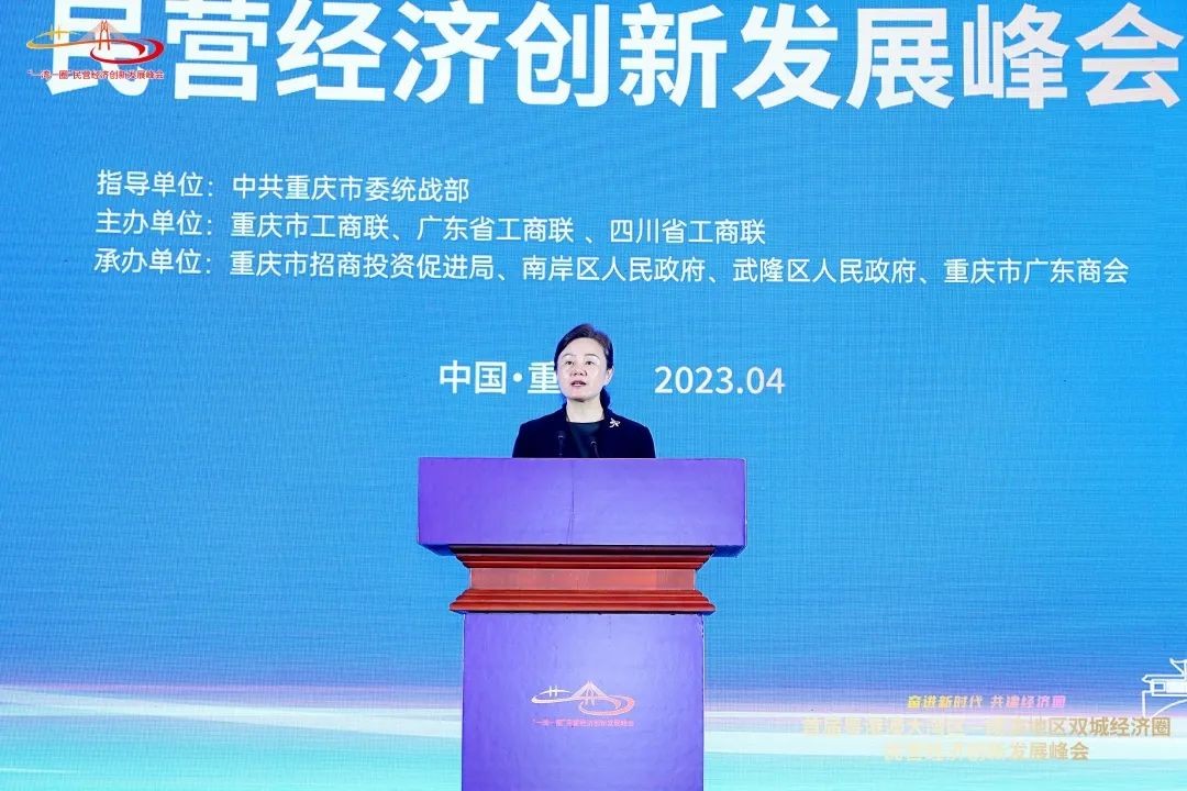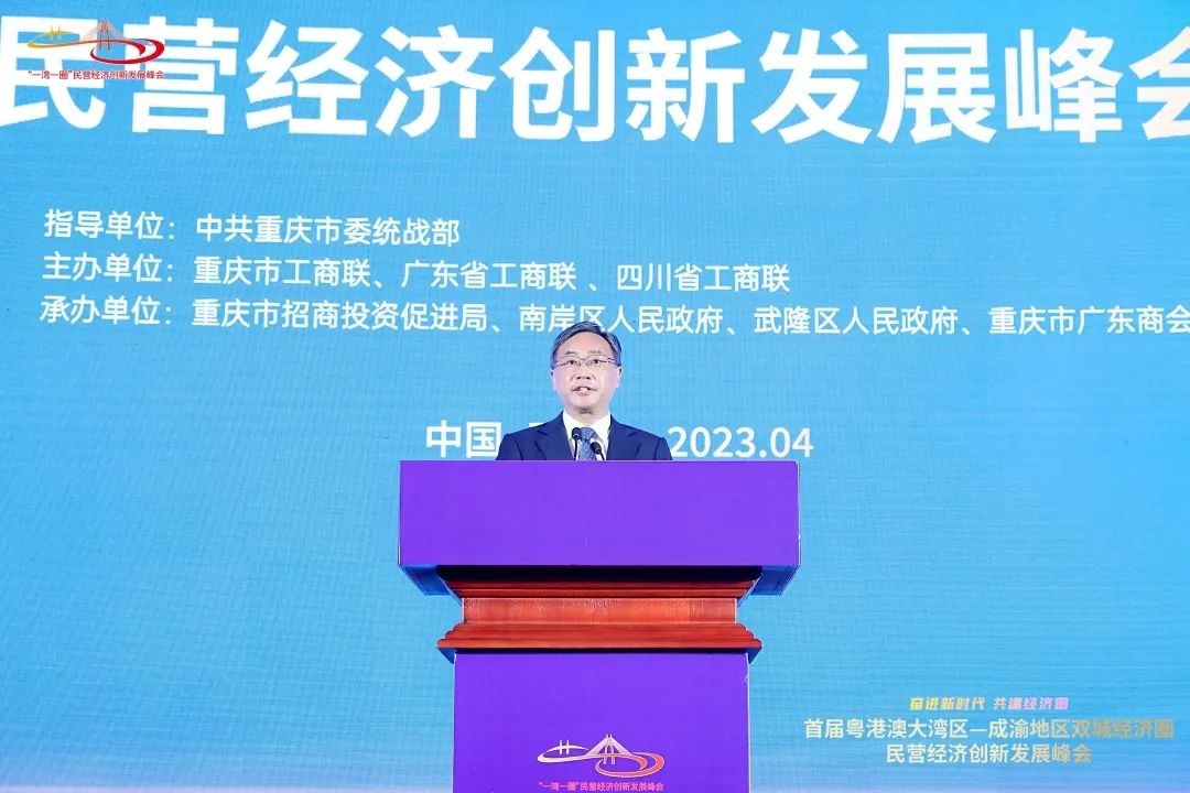 奋进新时代,共建经济圈。4月14日,首届粤港澳大湾区—成渝地区双城经济圈民营经济创新发展峰会(以下简称峰会)在重庆市南岸区隆重举行。本届峰会由重庆市委统战部指导,重庆市工商联、广东省工商联、四川省工商联联合主办,重庆市招商投资促进局、南岸区人民政府、武隆区人民政府、重庆市广东商会共同承办。