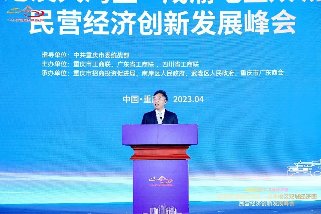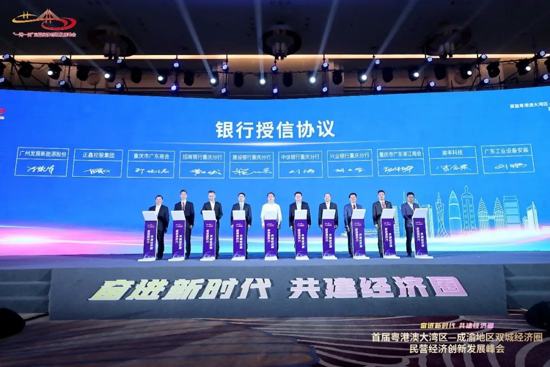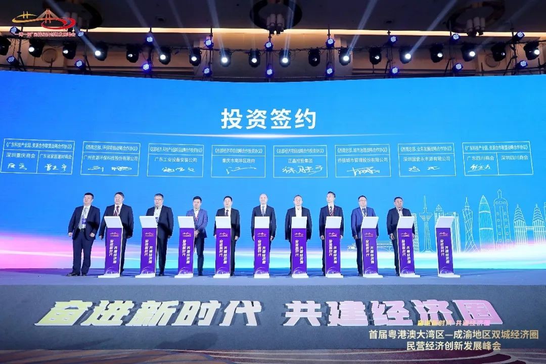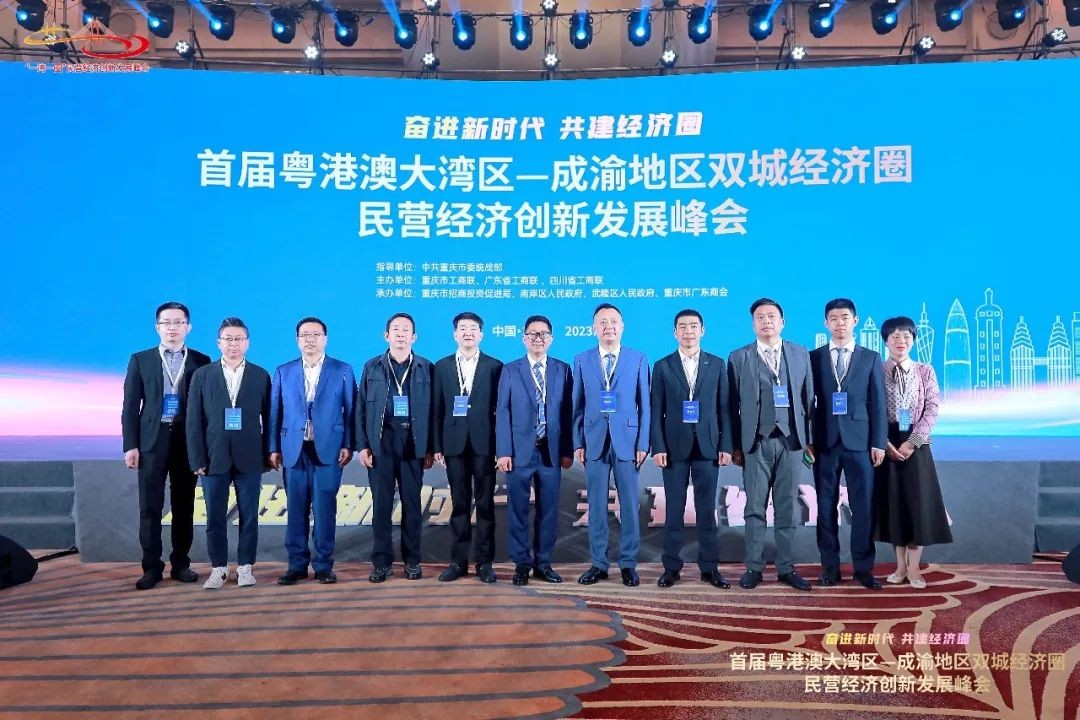 来自粤港澳大湾区和成渝地区的有关部门领导、“两极多方”商会会长、全国省级广东商会会长及全国优秀企业家代表近300人汇聚一堂,共话民营经济创新发展新路径,为粤港澳大湾区和成渝地区双城经济圈区域协调发展增添动力。四川省重庆商会作为此次峰会的发起单位之一,商会会长、星瑞集团董事长吕状文携商会常务副会长、中资国金建设有限公司董事长廖义全,秘书长高玄波,副会长(成都南川商会会长)、成都合达联行物业服务有限公司董事长游江,副会长(乐山市重庆商会会长)、四川广尚建筑工程有限责任公司总经理吴易峰,副会长单位渝江盛世(成都)文化旅游集团有限公司董事长程维明、副总经理程新川,理事、重庆金药盟科技有限公司董事长刘金权,理事、重庆泊广传媒有限公司董事长彭长远和副秘书长邓军军参加。