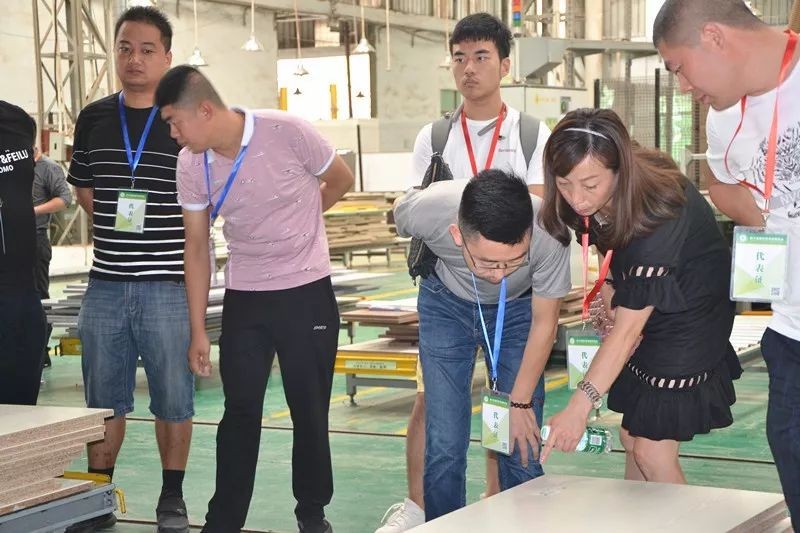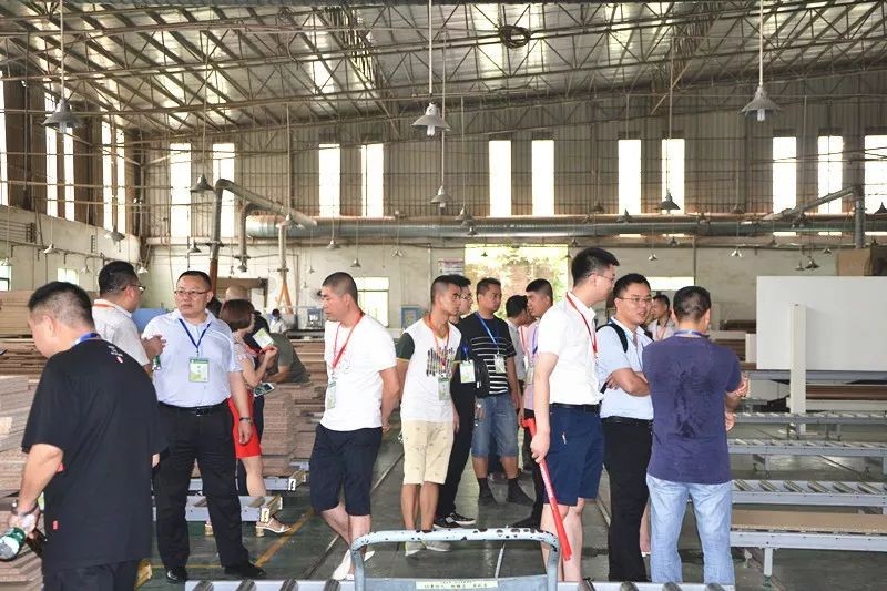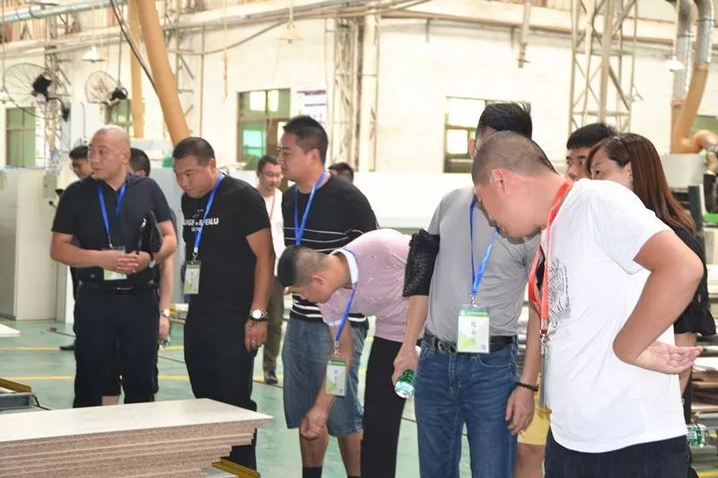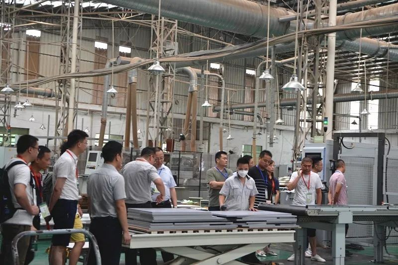 随后考察团一行在赖总和工艺经理何东兴的带领下深入生产车间,对艾依格的生产流程、产品工艺进行了深度观摩学习。艾依格产品从设计、工艺、开料、裁切、表面处理、装配、运输、安装到服务每一环节都做到最好,保证高品质产品。