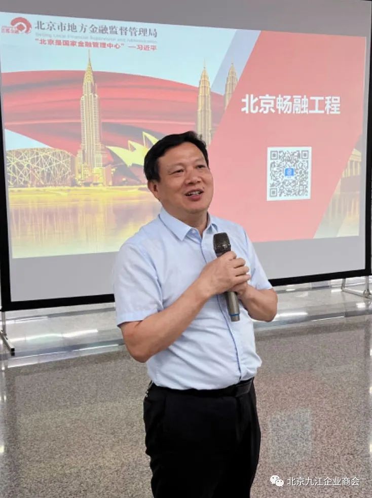 7月13日下午,为帮助北京九江企业商会在京企业提供精准、高效、专业的投融资服务工作,由北京市地方金融监督管理局、北京九江企业商会举办的北京畅融工程,金融助力在京浔商企业发展对接会在六里桥北京市政务服务中心四楼召开。北京市地方金融监督管理局北京畅融工程相关工作负责人聂晓晖,北京九江企业商会轮值会长、执行监事长刘建,北京九江企业商会秘书长苏堂孝,党支部书记、办公室主任彭珍,副会长黎慧,理事熊香萍,企业会员卢万玲,会员黄孝义等及九江在京各县(市区)商会会员和在京九江乡贤共60多人参加了会议。