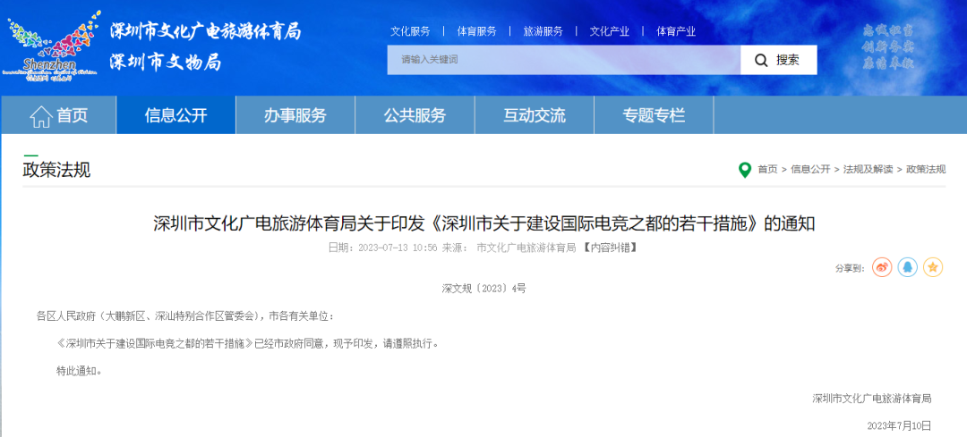 《深圳市关于建设国际电竞之都的若干措施》的通知