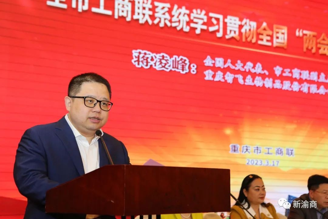 全国政协常委,全国工商联副主席、市工商联主席、赛力斯集团创始人张兴海,全国人大代表、市工商联副主席、陶然居集团董事长严琦,全国人大代表、市工商联副主席、重庆智飞生物制品股份有限公司副董事长蒋凌峰,全国人大代表、市工商联副主席、重庆誉存科技有限公司联合创始人陈玮,全国人大代表、重庆琪金食品集团有限公司董事长林其鑫5位企业家,分别在会上交流分享了参加全国两会的体会感受。张洪斌在讲话中指出,学习贯彻落实习近平在全国政协民建工商联界联组会上的重要讲话精神和全国两会精神,是当前和今后一个时期全市工商联系统的重要政治任务。全市工商联组织要认真组织起来、迅速行动起来,迅速掀起学习贯彻的热潮,切实做到学在深处、谋在新处、干在实处。全国两会取得丰硕成果,最具里程碑意义的成果是习近平总书记继续领航掌舵,为全面建设社会主义现代化国家,全面推进中华民族伟大复兴筑牢坚实的政治根基;最具实践指引的成果是确定了开局之年的目标任务,把党的主张转化为人民意志;最具深远影响的成果是推进系列制度创新、迭代升级、系统集成,深刻回答了事关推进中国式现代化的重大问题;最具鼓舞人心的成果是进一步统一思想、统一意志、统一行动,凝聚起以中国式现代化全面推进中华民族伟大复兴的磅礴力量。张洪斌强调,要充分认识全国两会取得的丰硕成果,进一步增强坚决拥护“两个确立”,坚决做到“两个维护”的政治自觉、思想自觉、行动自觉。要全面学习、深入落实习近平总书记重要讲话精神,把思想和行动统一到党中央重大决策部署上来。深刻认识习近平总书记的重要讲话再次表明党中央支持民营经济发展壮大的一贯态度和坚定立场;深刻认识习近平总书记的重要讲话是习近平新时代中国特色社会主义思想的最新理论成果,是新时代民营经济发展的科学指南和根本遵循,是新时代工商联“两个健康”工作的指导性文献。要认真落实习近平总书记重要讲话精神,持续推进“两个健康”工作取得新成效。不断深化思想引导,抓实服务举措,聚合民企力量,引导民营经济人士稳预期强信心,推动民营经济健康发展、高质量发展,积极参与乡村振兴,促进共同富裕。