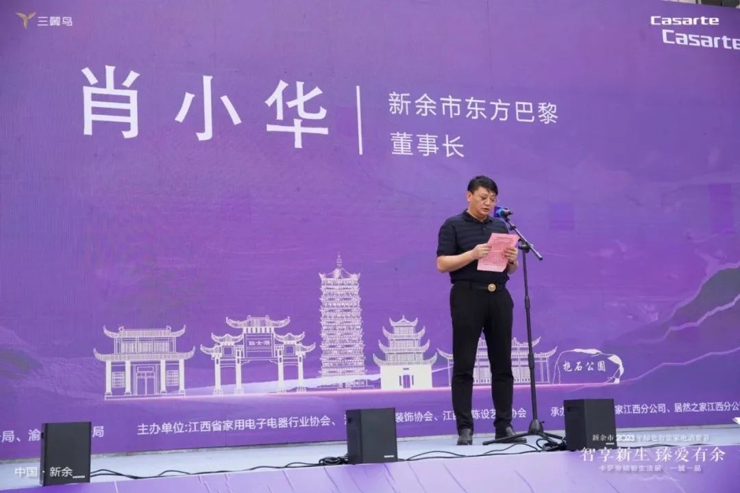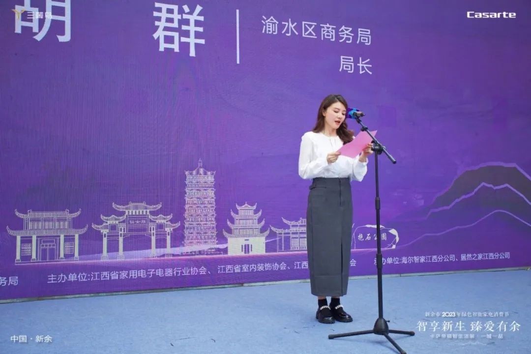 9月16日,智享新生 臻爱有余,2023年新余市绿色智能家电消费节暨卡萨帝精智生活展·一城一品活动在新余居然之家东方巴黎广场盛大举行。本次活动由新余市商务局、渝水区商务局担任指导单位;江西省家用电子电器行业协会、江西省室内装饰协会、江西省陈设艺术协会主办;海尔智家江西分公司携手新余市东方巴黎推进绿色智能家电“焕新购”系列家电消费促进活动的落地,呈现了一场智慧与热爱交汇、科技与艺术共舞的艺术盛宴。新余市商务局党组成员副局长黄邕斌、渝水区商务局局长胡群、渝水区商务局副局长何继文、海尔智家江西分公司营销总监周楚舒、新余市东方巴黎董事长肖小华、江西省陈设艺术协会秘书长魏芸芸、新余女企业家协会常务副会长吴春芳、新余市女企业家协会副会长肖颖洁;大仟装饰、一木设计、欧派等20家生态异业高层领导;江西电视台、新余电视台、新余日报、新浪网等10余家主流媒体共同参与并为本次活动报道。活动现场分卡萨帝精智生活展区和绿色智能家电精品区,让用户直观感受卡萨帝产品设计美学的同时,领略绿色智能家电带来的精智体验。渝水区商务局局长胡群发表讲话,他表示在2023年为进一步释放绿色智能家电消费潜力,新余市将面向全市发放“2023年绿色智能家电消费券”,消费需要引领、宣传、推广,好的产品要有好的宣传,好的推广对促进消费的意义重大。希望政企携手,共同助推“2023江西消费提振年”活动,更好满足广大消费者的需求。新余市东方巴黎董事长肖小华上台致词,阐述了近几年全市家居行业的发展形势及未来的机会,充分肯定了卡萨帝的运营理念和服务模式,希望通过着这样一种政企联合举办活动促进即将到来的中秋国庆黄金周的大众消费,让人们生活水平达到一个新的高度。聚焦“绿色、节能、健康、智慧”,开展“绿色智能家电消费季”的促进消费活动,海尔智家江西分公司营销总监周楚舒发表重要讲话,围绕国际高端家电品牌卡萨帝带来的家庭场景解决方案进行致辞。品艺·:《美丽的仙女湖》现场演绎本土原创舞蹈《美丽的仙女湖》再现七仙女的浪漫爱情故事,与卡萨帝为爱不凡的产品理念不谋而合。品景:《动感未来》通过演绎动感新余,再现新余绿水青山的自然风光,通过演绎新余抱石公园,大岗山,仙女湖等。让参与用户现场体验卡萨帝带来的精智生活。品食:甄选新余当地特色水龙豆腐,水北豆腐现场,搭配富锶拿铁。中西融会贯通,领略舌尖上的新余味道。接下来的新余2023年市绿色智能家电消费节启动仪式,将整个活动的氛围推向了高潮,它不仅表明了卡萨帝将联合众多品牌贯彻落实中央经济工作会议精神的实际举措,落地促进消费节能的决心,更是像新余人民展示了一种高端的生活理念,文明健康的生活方式才能够形成良好的生态循环,最终带来更优质的体验和感受。智享新生臻爱有余,伴随着卡萨帝品牌之歌《繁星》的表演结束,本次2023年绿色智能家电消费节暨卡萨帝精智生活展·一城一品活动圆满成功举行,卡萨帝将通过一城一品活动,凝聚更多高端资源,为更多江西家庭带来“智慧、艺术、精智”的生活方式,让我们与卡萨帝一起,在追求极致的前进道路上,秉持匠心,共享美好精智生活!
