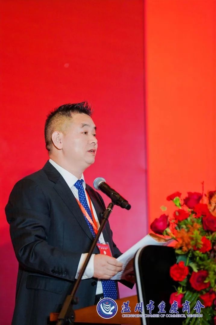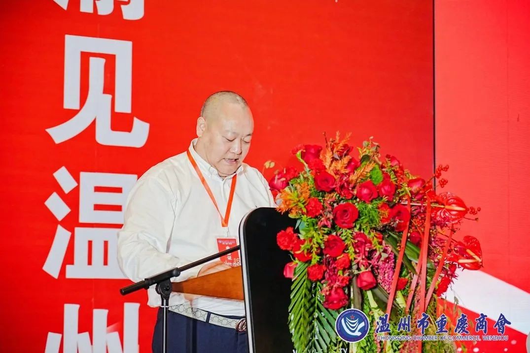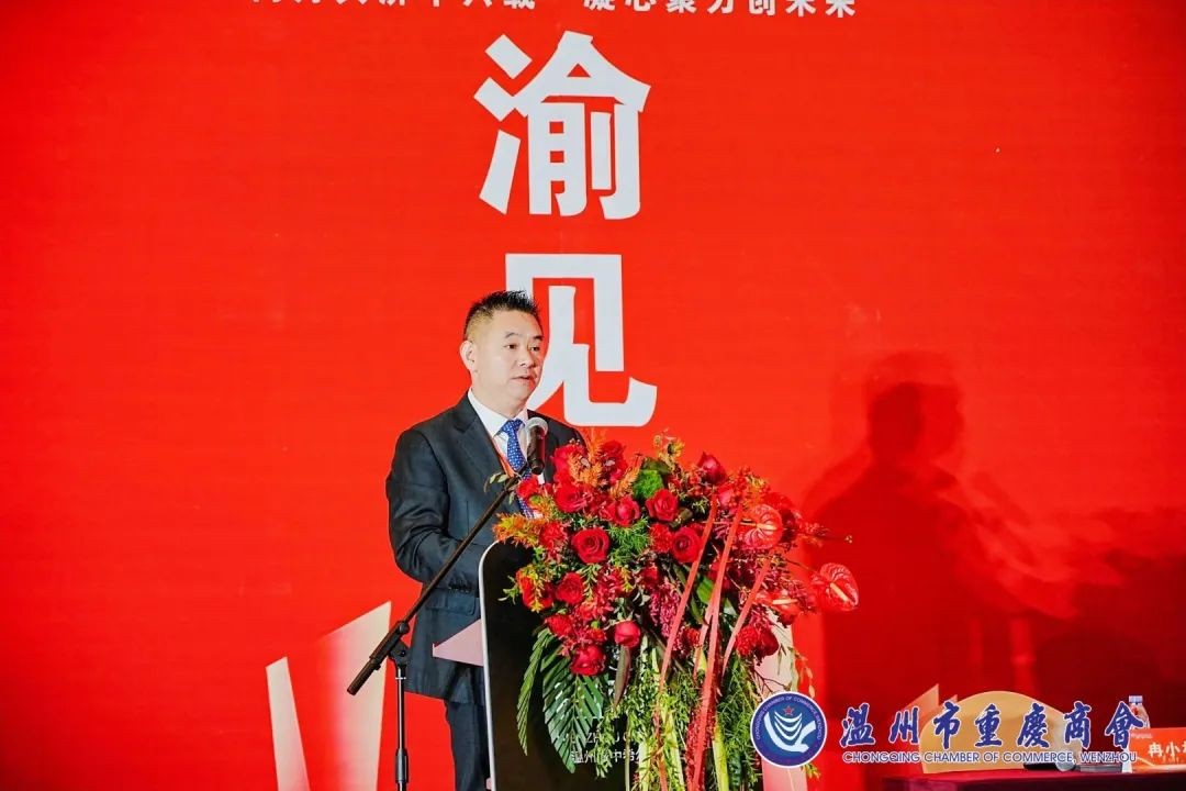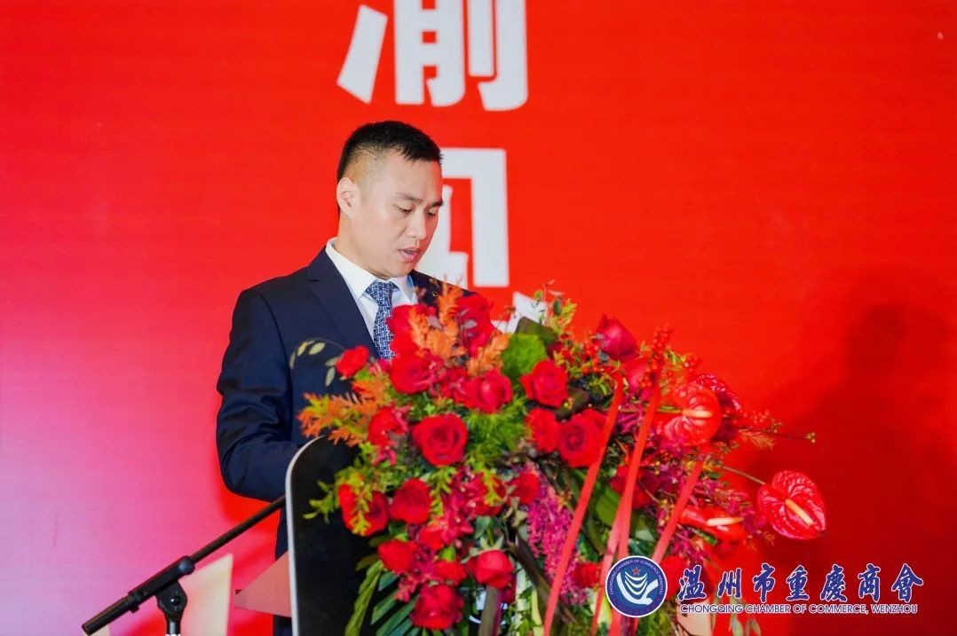 温州市工商业联合会党组成员、副主席陆千帆上台致辞,他表示,温州市重庆商会积极主动参与温州新时代两个健康先行区创建工作,积极履行社会责任,商会各项工作都取得显著成效。希望商会企业家,探索更多的创业模式和经验,为实现温渝两地社会经济高质量发展作出积极贡献。