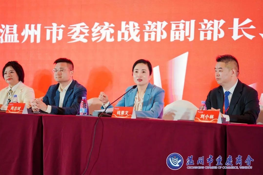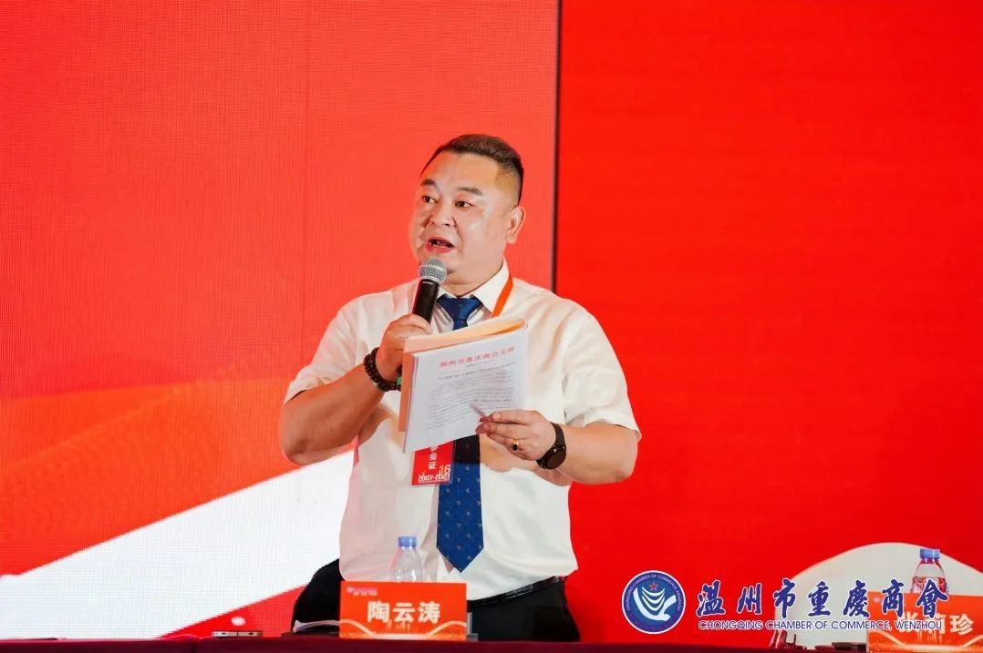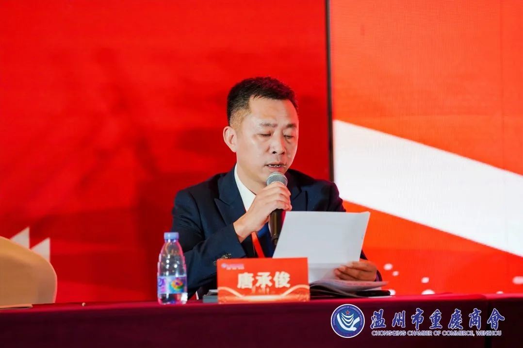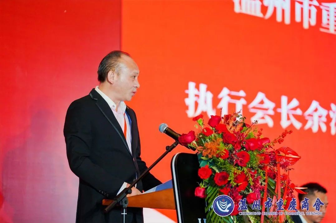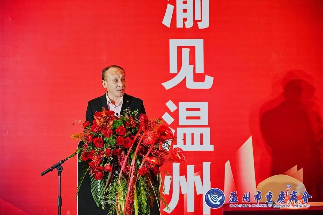 温州市工商业联合会党组成员、副主席陆千帆上台致辞,他表示,温州市重庆商会积极主动参与温州新时代两个健康先行区创建工作,积极履行社会责任,商会各项工作都取得显著成效。希望商会企业家,探索更多的创业模式和经验,为实现温渝两地社会经济高质量发展作出积极贡献。