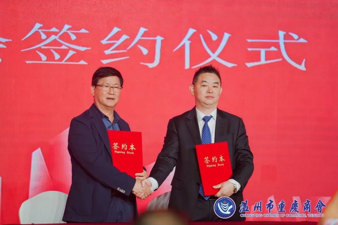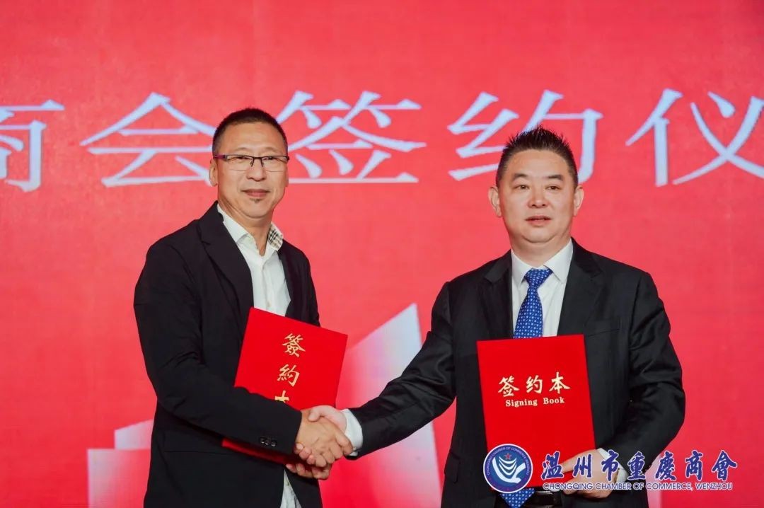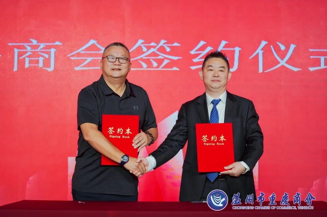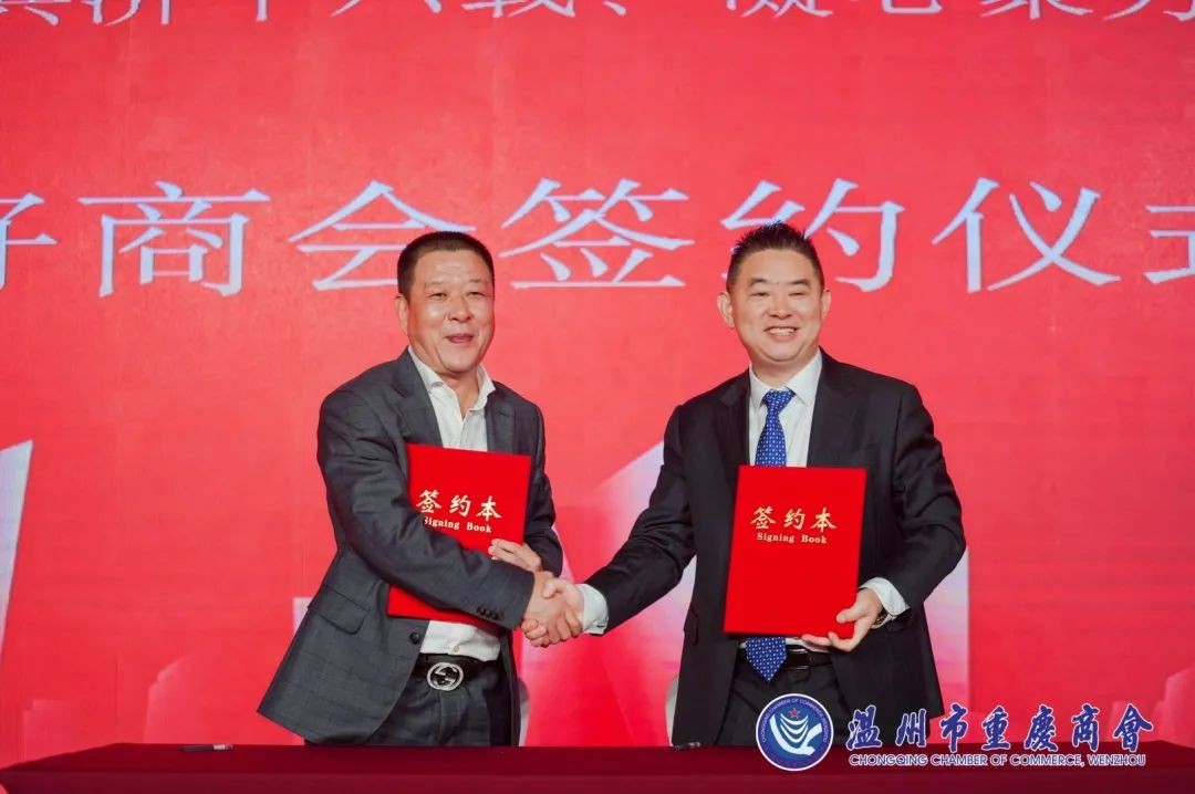 温州市重庆商会会长刘小林与温州市德国华侨联合会会长陈勇签订友好商会战略合作协议。