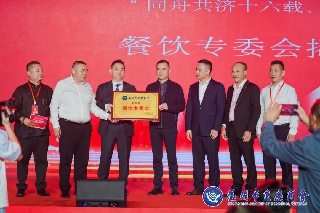 庆典上,温州市重庆商会会长、餐饮专委会主任刘小林、温州市饭店与餐饮行业协会会长黄素武共同为“温州市重庆商会餐饮专委会”揭牌。