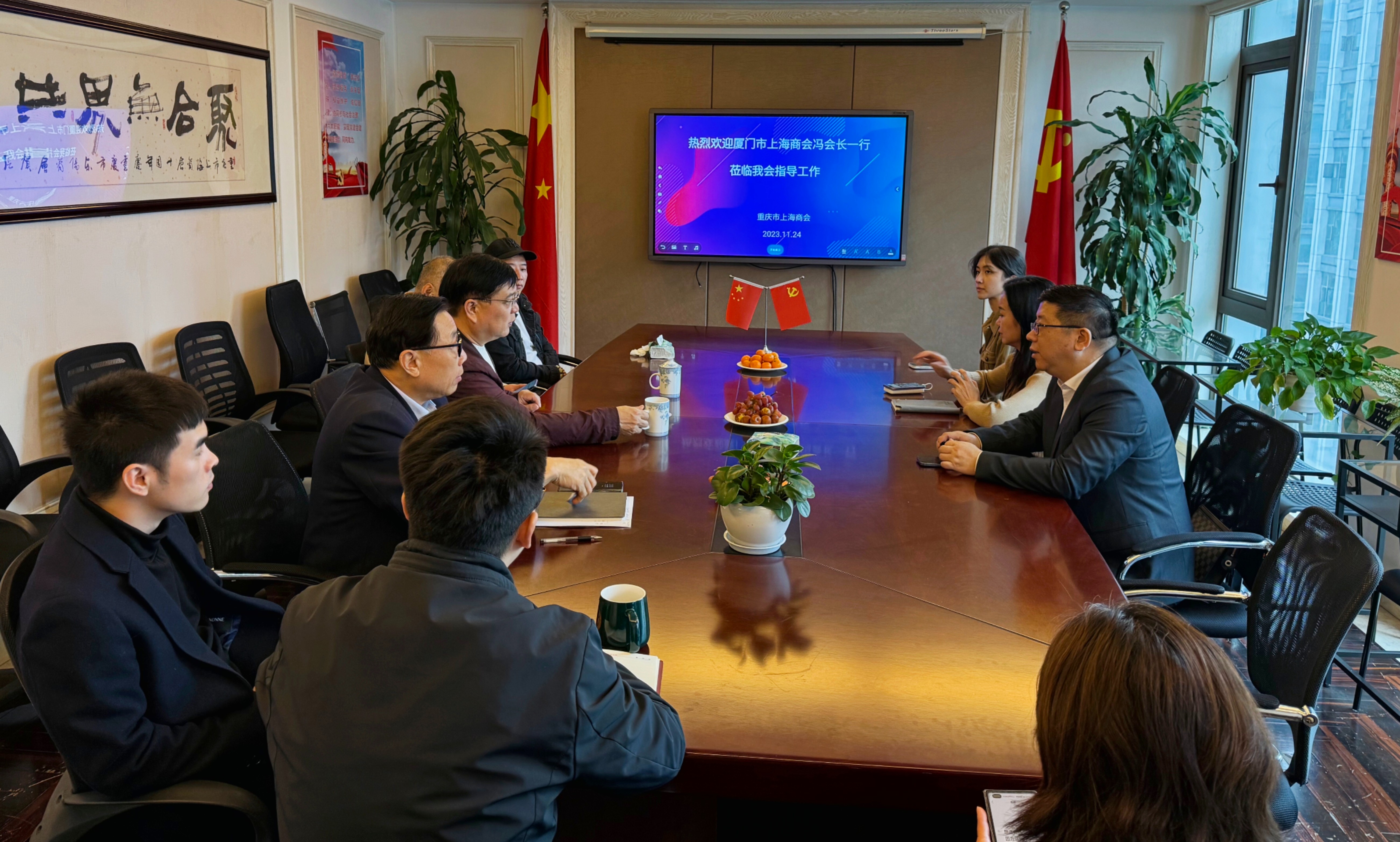 青山一道同云雨,明月何曾是两乡。为持续加强异地上海商会间的交流学习,持续增进兄弟商会间的互助情谊,2023年11月24日,重庆、厦门两市上海商会在渝举行了座谈交流会,深入交流了做好会建党建工作的经验方法,深入探讨了共建两地上海商会合作共赢的有效机制,切实达成了“互学共进、互享资源、互助共赢”的合作共识。