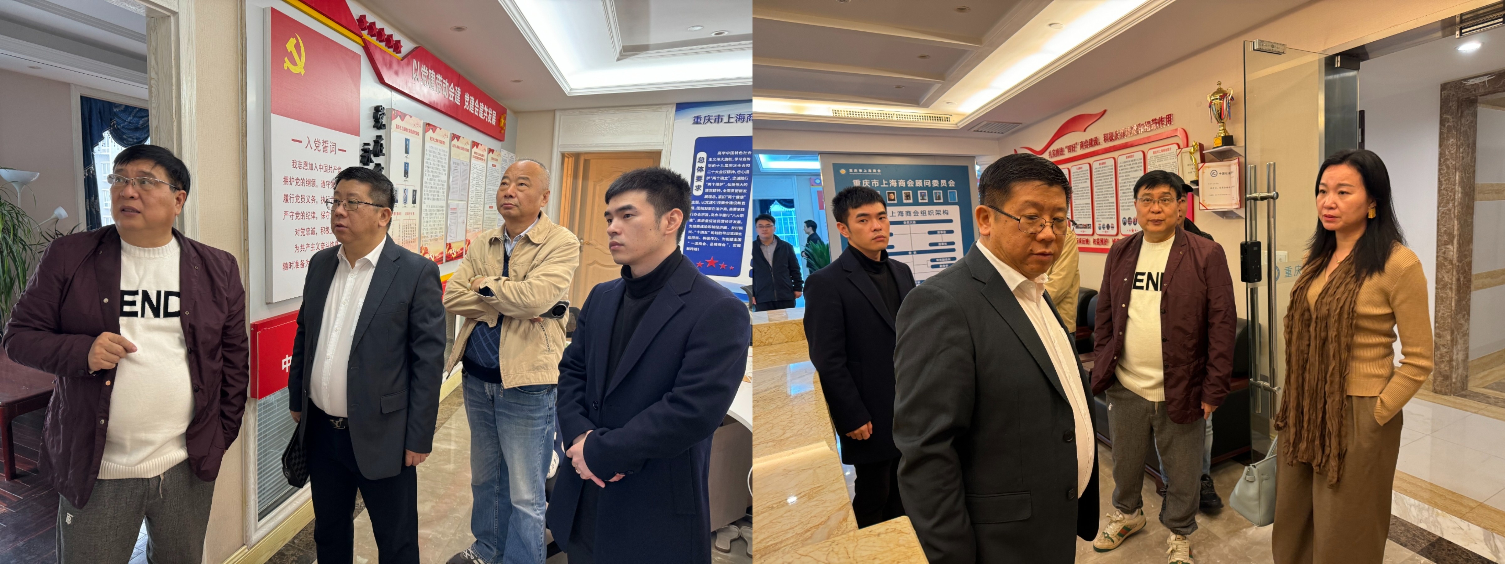 会前,韦根会长陪同冯意山会长一行参观了商会办公环境、党建会建、组织架构、会员风采、荣誉墙等相关内容。