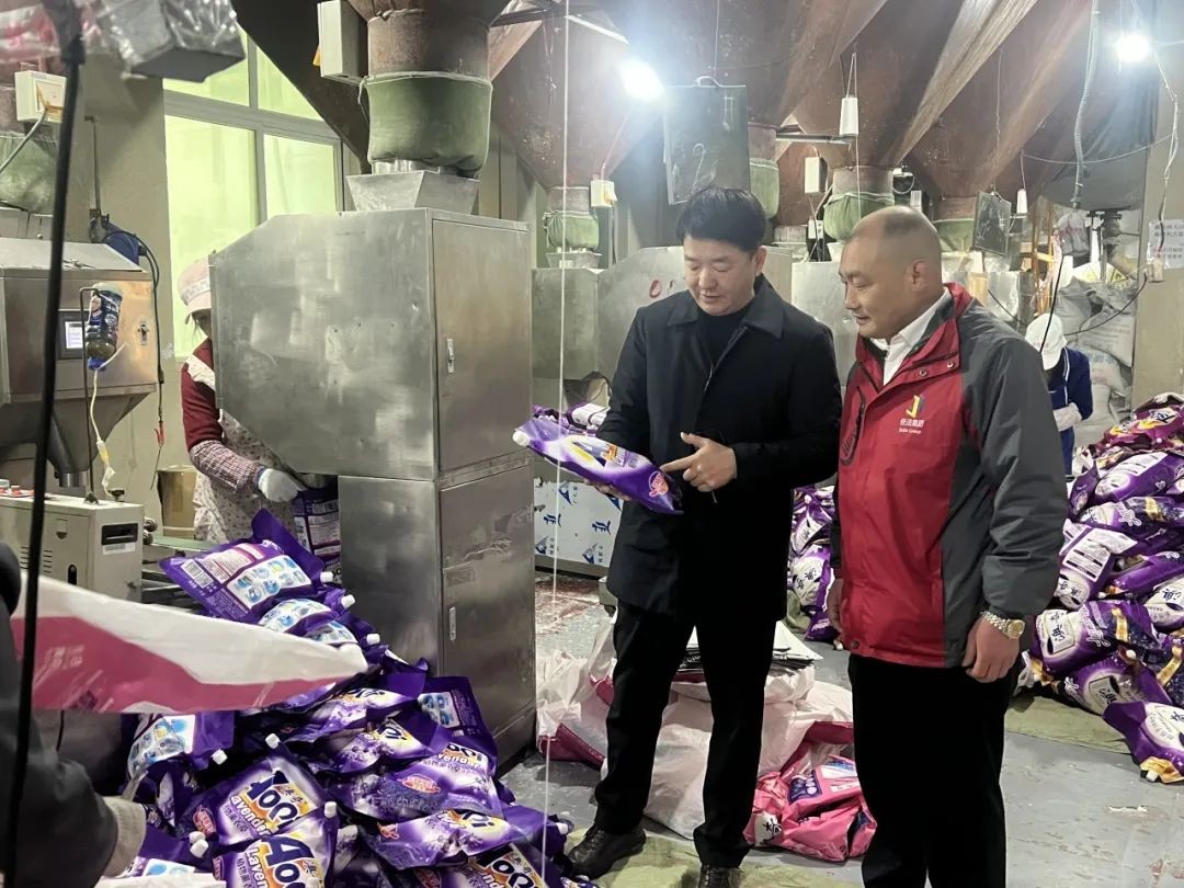 在商会常务副会长、佳洁实业成都分公司张荣策的陪同下,易光伟一行来到了生产车间进行参观。在忙碌的车间,工人正在工位上紧张有序的进行生产,各类家庭日化用品从生产线上源源不断地生产出来。易光伟详细了解了企业规模、产品种类、企业产值、销售情况等。他对佳洁实业成都分公司在2023年实现产值稳中有升,取得了产品销售超亿元的良好业绩表示了充分肯定。同时,对公司带领甘肃省积石山县经销商,向地震捐赠救援物资的善举给予了高度赞赏。