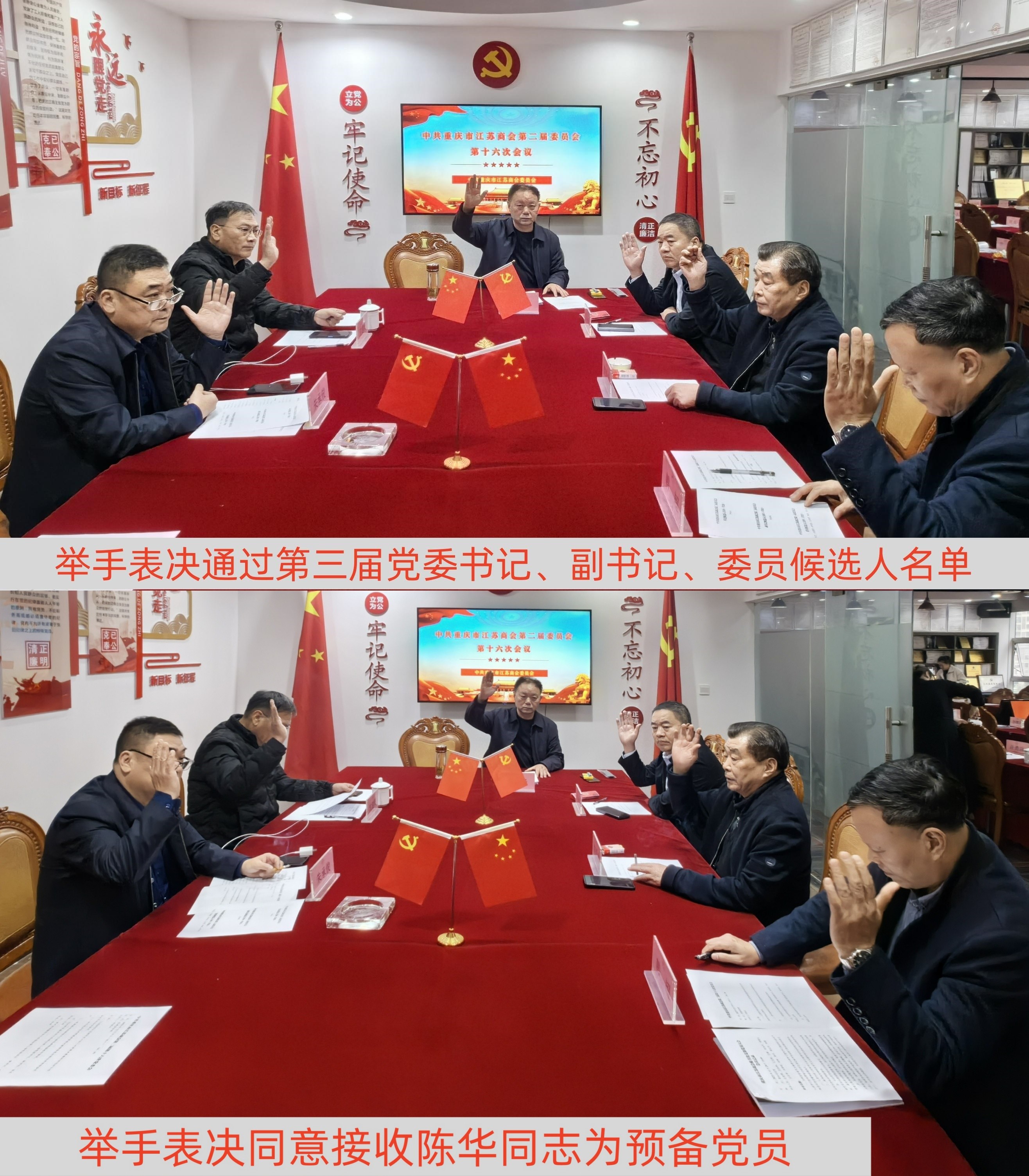 12月9日下午,重庆市江苏商会第二届第十七次党委会在商会党建活动室召开。党委副书记李桂云、周金城,组织委员沈圣林,纪检委员沈建辉,统战委员朱承俊,宣传委员韩超参加会议。