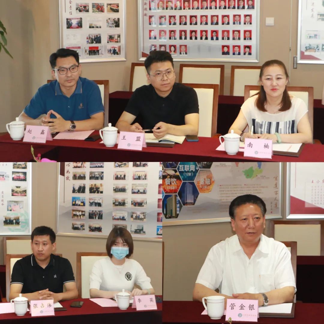2023年6月15日下午,天津市滨海新区滨渝企业发展联合会终身荣誉会长田井权,党支部书记南楠,秘书处副秘书长王盟、李英、张占伟、赵鑫等领导一行莅临我会指导交流。我会执行会长、投资发展委员会主任牟天林,执行会长何立渊,秘书处代表商会热情接待。