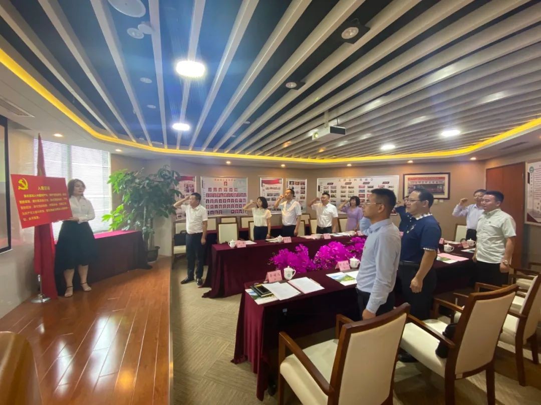 7月1日是伟大的中国共产党的生日,值此之际,严映中带领参会党员重温入党誓词。