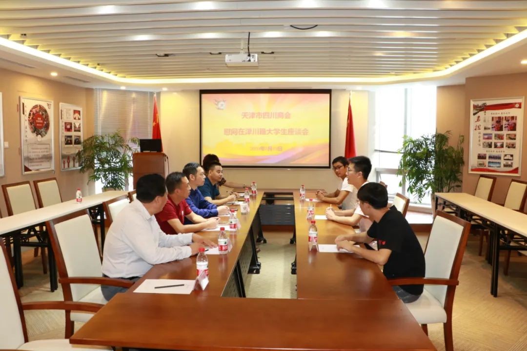 2020年8月19日上午,在津川籍大学生慰问座谈会在商会会议室召开。商会执行会长、三季度值班会长何立渊,商会公益负责人、副会长王林,专职秘书长管金银,天津川渝学生联合会主席张先豪及部分在津川籍大学生参加此次活动。