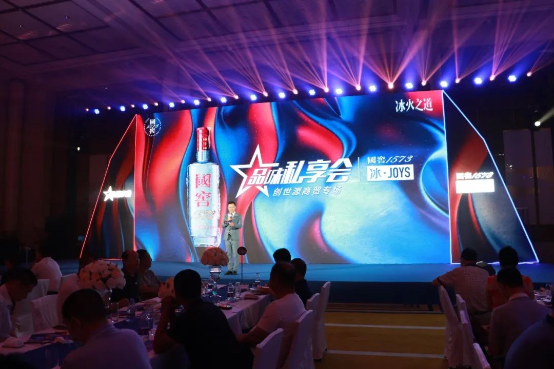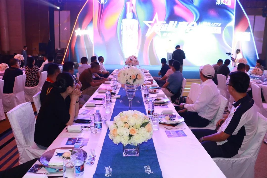 朱总邀请现场嘉宾共同举杯,一起喊出口号:“1573,举杯就干”!共同开启国窖1573璀璨之夜!
