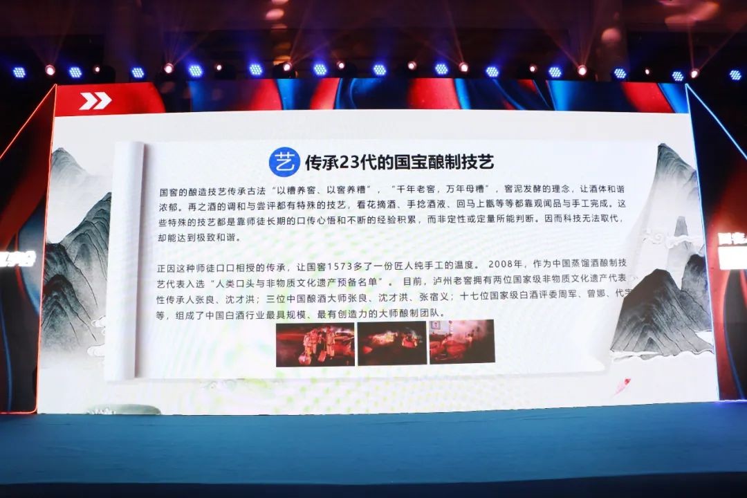 接下来,到场嘉宾讲解《传承23代的国宝酿制技艺》,国窖1573的发展历史和地、窖、艺、水、粮、洞六大核心酿酒资源,国窖品牌的发展战略,千年品牌塑造文化的企业发展理念,嘉宾们认真倾听,对国窖品牌、产品的认识更加深刻。