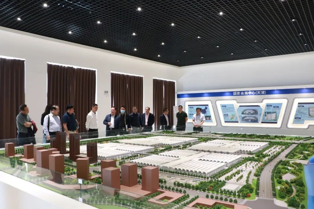 最后,商会代表一行参观考察了天津国家会展中心项目展示沙盘及施工工地,详细了解了国家会展中心的项目规划、建设进度等情况,并就“中国建筑科学大会暨绿色智慧建筑博览会”筹备情况等事宜进行了交流探讨。