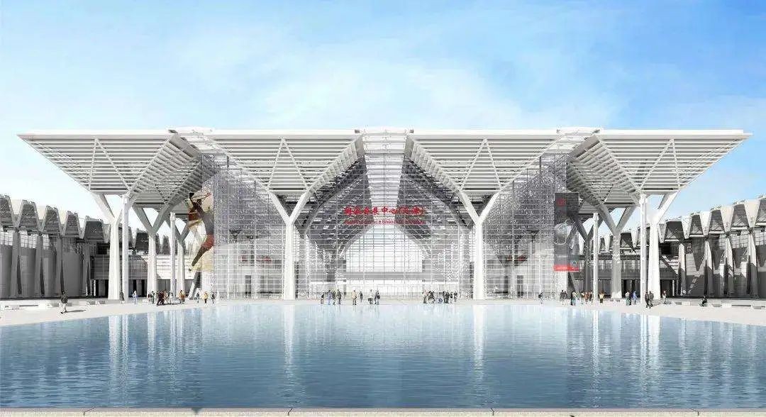 天津国家会展中心,位于天津市津南区海河中游南岸,是商务部与天津市共建的国家级会展中心,天津会展中心是上海、广州之外的第三大国际会展中心。规划可用地面积1.31平方公里,项目建设内容主要包括大型展览馆、地下车库和设备用房,项目总建筑面积134万平方米,展馆面积40万平方米。综合配套区包括酒店、商业、会议、办公与餐饮,共约31.7万平方米。分为两期建设,总投资175亿元。计划于2021年6月一期建成。