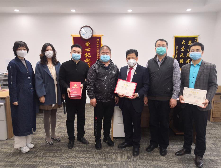 3月26日,天津市光彩事业促进会向天津市四川商会众多会员企业颁发捐款荣誉证书。