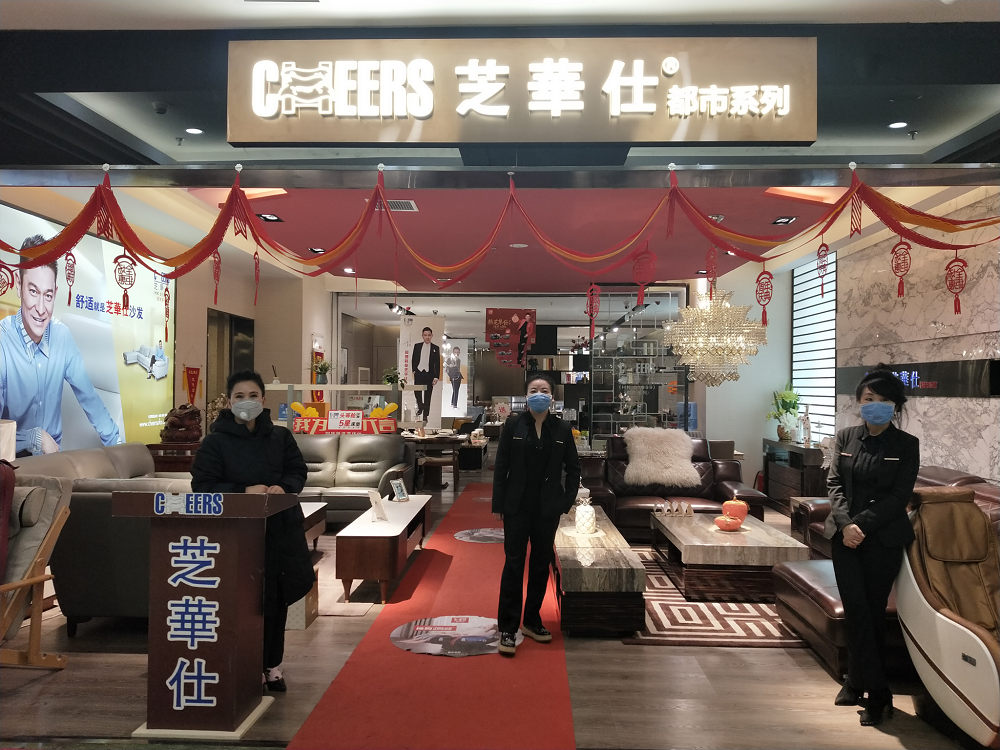 3月17日,商会秘书长丁凤山带领工作人员走访商会常务副会长陈雪位于御东月星家居城的芝华仕家居店。