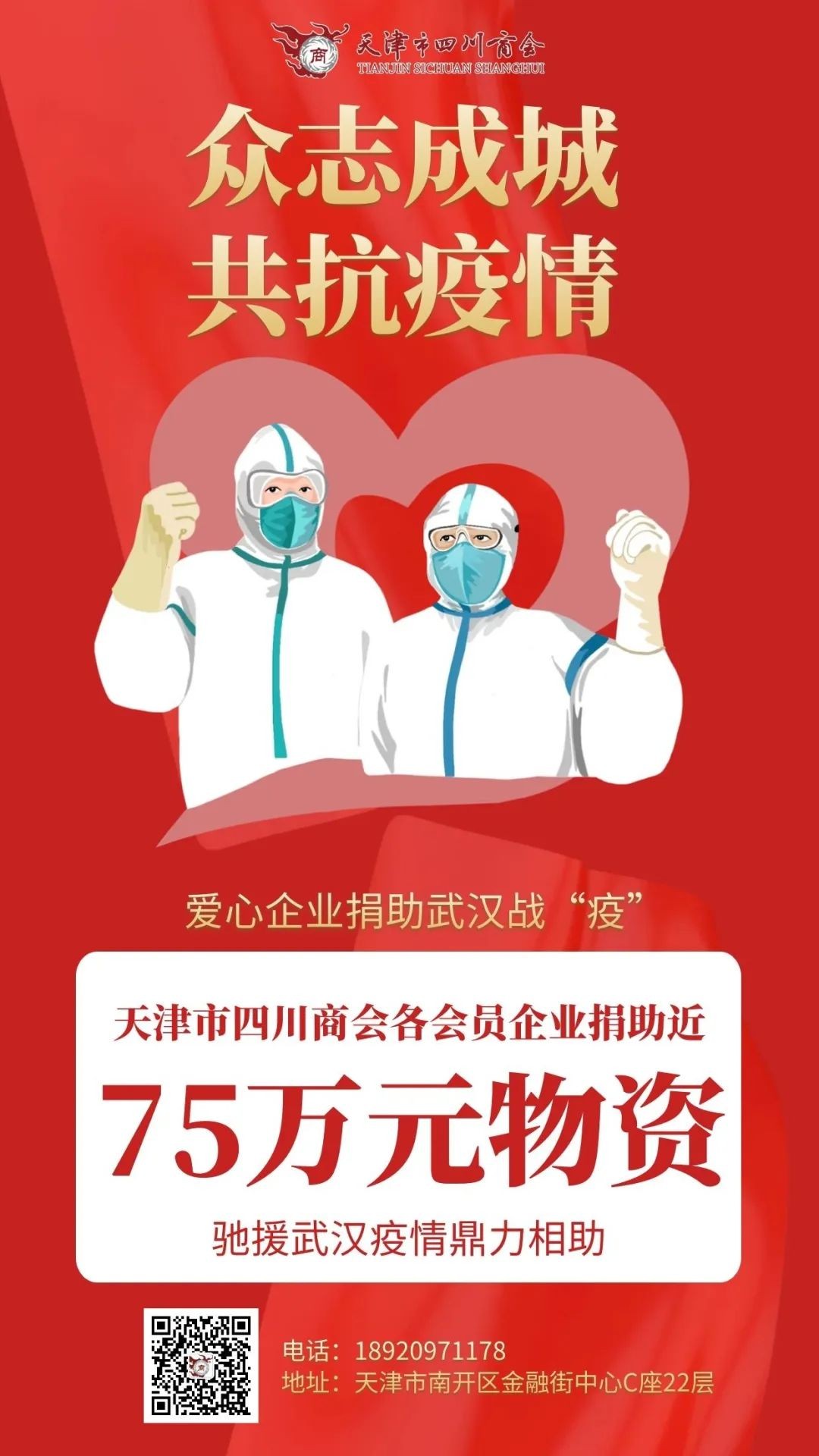 疫情发生后,天津市光彩事业促进会立即发起捐助倡议,天津市四川商会众多会员企业积极响应,纷纷慷慨解囊捐款捐物,驰援一线全力抗击疫情。