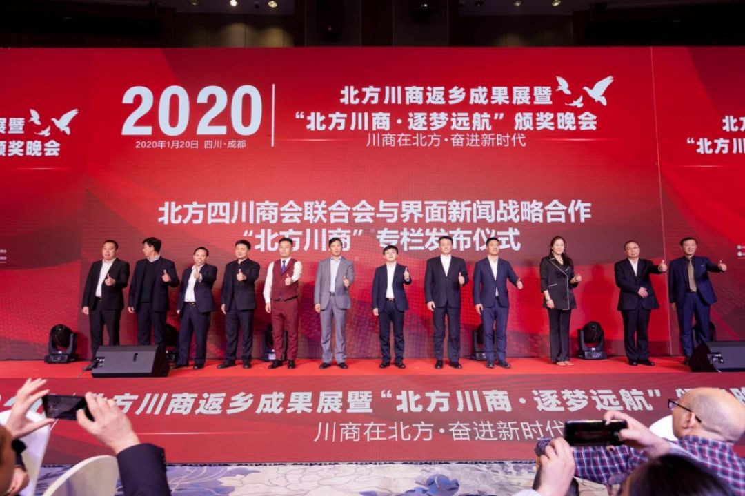 北方川商积极开展返乡活动,也在充分对接社会各界资源为北方川商返乡发展服务。为了进一步增强北方川商在川内的影响力,全面及时的报道北方川商的新闻信息,讲好川商故事,联合会与界面四川开展合作,开设“北方川商”专栏。在晚会现场,界面四川总裁王平与联合会各成员共同登台,在现场嘉宾的见证下,“界面四川&北方川商”专栏发布仪式圆满落幕。