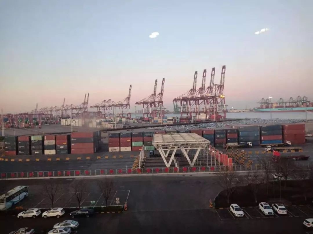 考察团一行首先来到天津港太平洋国际集装箱码头。太平洋国际集装箱码头位于天津港东疆港区南端西侧,2007年12月11日码头正式封关运作,是天津东疆保税港区第一个开发建设的项目,也是该区的标志性、启动性工程。码头岸线全长2300米,陆域纵深约1公里,预留水深为-18米,年设计集装箱吞吐能力400万标准箱;采用智能化的全中文码头操作系统CTAOS,在国内码头中首家实现了对所有作业元素的实时位置信息捕获,通过智能化操作流程,极大地提高了码头作业效率。