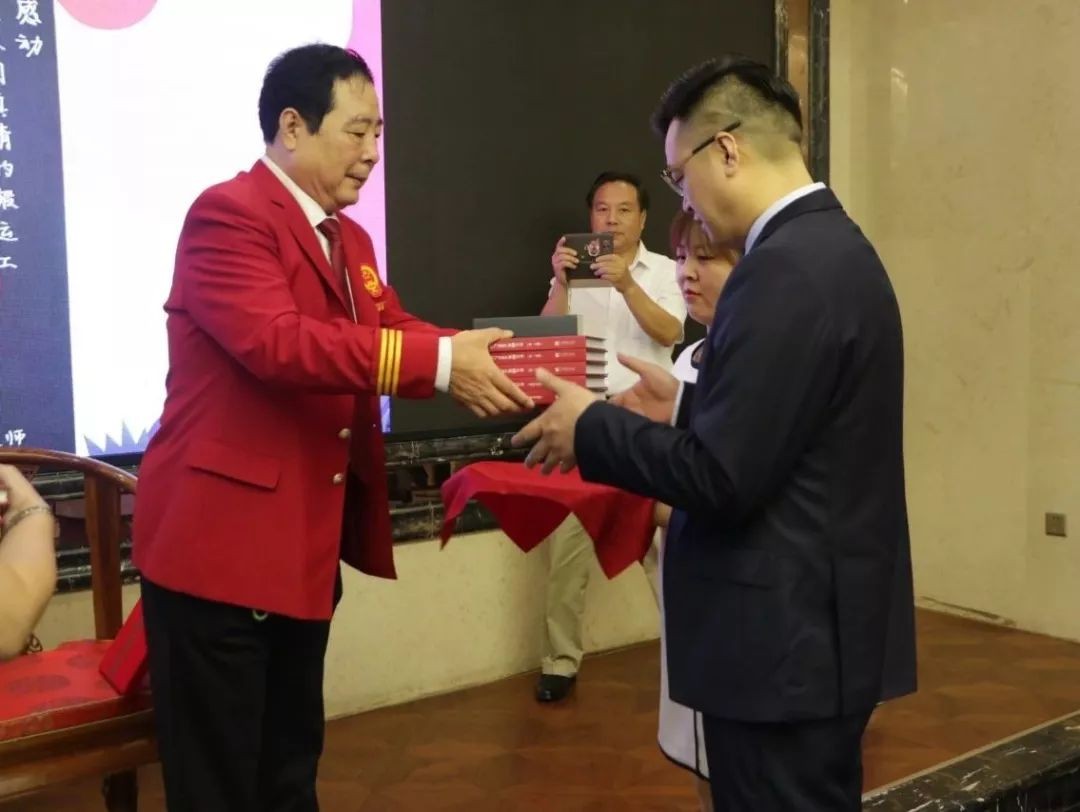 李振洋大师为徒弟互换拜师贴及赠送纪念品。拜师贴是师徒的关系见证与书面合约,代表一段师徒情谊的开始。