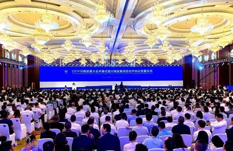 2019年6月26日上午,2019川商发展大会开幕式暨川商发展项目合作协议签署仪式在成都举行,来自境内外的1500多名川商、知名企业和商(协)会负责人齐聚蓉城,共叙桑梓之情、共谋发展新篇。省委书记彭清华出席开幕式暨合作协议签署仪式并致辞,省委副书记、省长尹力主持,省政协主席柯尊平出席,全国工商联党组副书记、副主席樊友山致辞。