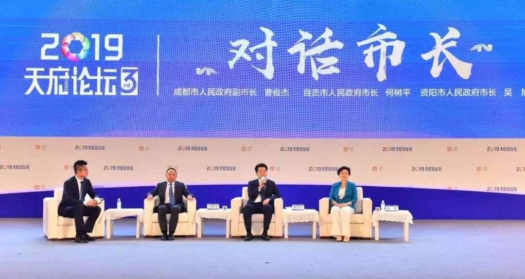 2019天府论坛创新设置“对话市长”环节,特邀成都市副市长曹俊杰,自贡市市长何树平,资阳市市长吴旭三位市长,现场探讨政府如何助力企业可持续发展。市长们分享到,政府在市场环境下如何发挥作用,对于促进企业的发展,促进企业的竞争力方面应该有很多作为,既有营商环境的打造,也有产业的生态环境的打造。政府让城市更美好、让人才更聚集、让成本更低廉、让服务更便捷、让服务更主动,做到反应快、服务好。三位市长的即兴对话观点碰撞,坚定了在外川籍企业家回川发展的信心,助推客商扎根四川的决心。