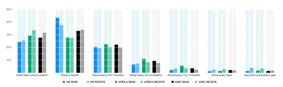 此外,肯尼亚、摩洛哥、塞内加尔等国家超过80%的受访者对预付卡和电子钱包作为收款方式感兴趣。南非、肯尼亚85%的汇款人表示,他们很乐意使用面部识别/生物识别服务来改进汇款流程。