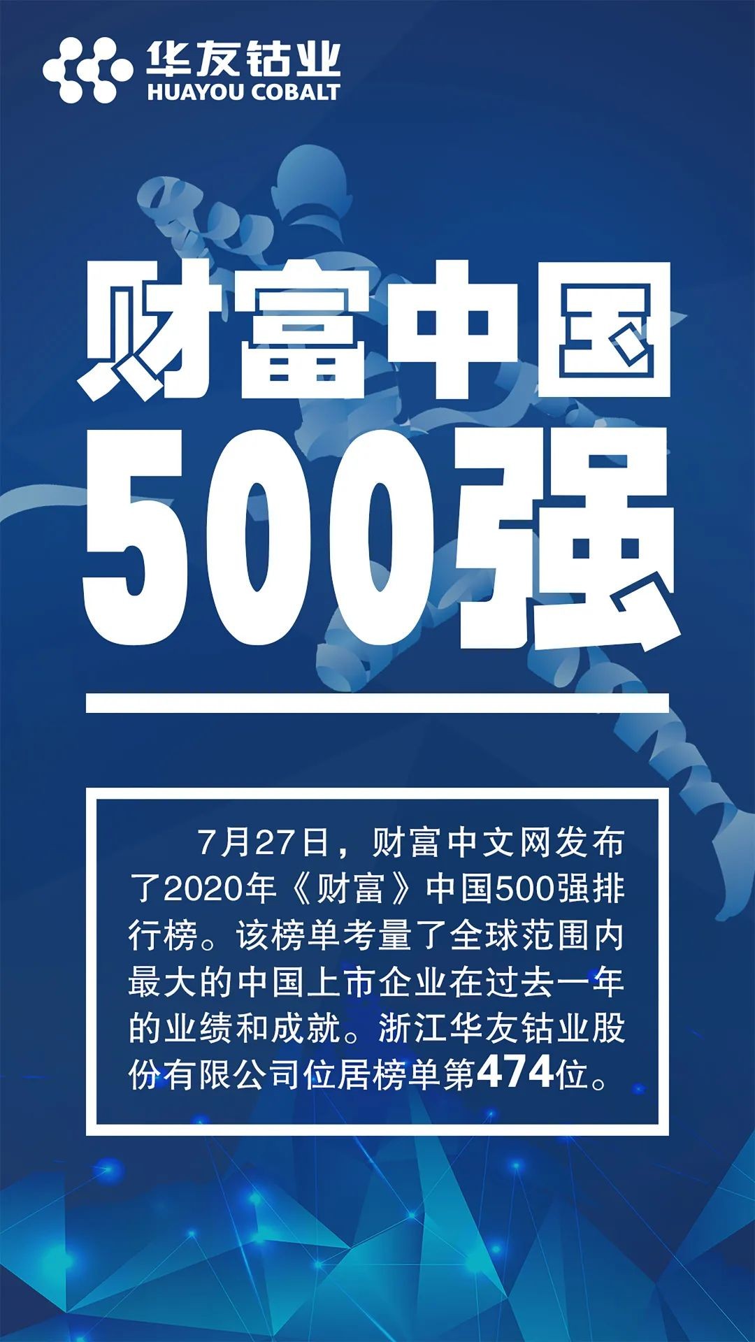【会员动态】浙江华友钴业股份有限公司跻身《财富》中国500强