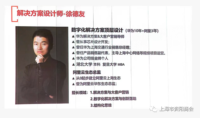 徐德友老师就解决方案与大客户营销,数字化解决方案与创新落地结构化思维为各位会员作了详细讲解。参会人员深入交流,深度剖析华为持续成功背后的企业文化,分别对各自企业管理及商务接待礼仪等方面分享了自己的心得。活动结束后由上海市资阳商会执行会长、秘书长李毅代表商会赠送了一枚篆刻印章、一副书法作品给王宇卿老师,此两件礼物由王宇卿老师提供文字、中国书法家协会会员、前嘉定区文联副主席、上海市资阳商会名誉顾问杨祖柏完成。