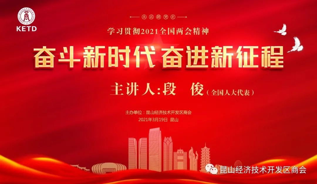 2021年3月19日下午,开发区商会为了“深入贯彻落实党的十九届五中全会精神”同时也为了更好的帮助会员企业了解掌握新政策,特邀来自昆山开发区的全国人大代表段俊女士传达两会精神。昆台工商协进会、四川商会联合参加了会议,活动在昆城一品国际宴会中心四楼【昆城厅】举行。