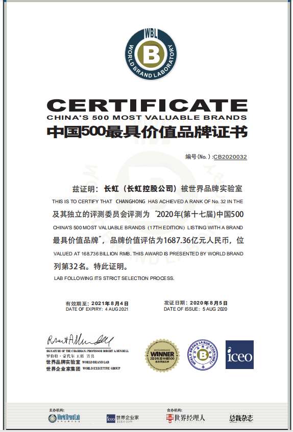 可见,如今的长虹已不仅仅是家电,之所以连续入选《中国500最具价值品牌》榜单,也是因为长虹面向物联网的转型成绩斐然,家电已不能完全体现长虹的视野、格局与未来。