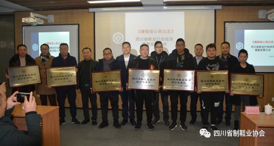 此次会议又给四川省鞋业协会新增补的康凤鞋业、贝艾妮鞋业、鑫隆盛鞋业、阿么鞋业、鹰狮皮革、汇都皮革鞋材城、扬锦国际鞋业产业园、广元舒之恒鞋业等8家企业进行了授牌仪式。在交流活动中新增补的副会长阿么鞋业肖龙在会上也做了电商方面的分享。