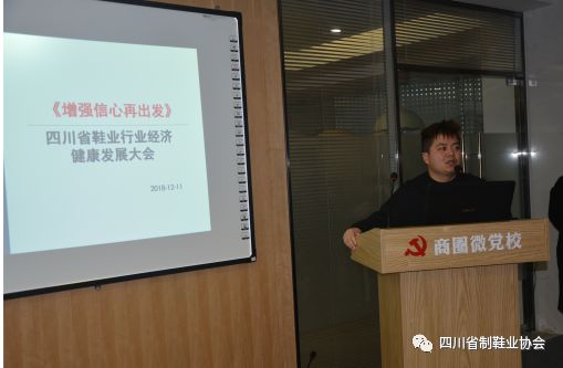 2018年12月11日下午,为了贯彻省市政府文件精神,四川省鞋业协会《增强信心再出发》 四川鞋业行业经济健康发展大会,在中国女鞋之都展览展示中心三楼党建会议室隆重召开,近150位行业同仁共同学习宣传各级政府的会议政策精神,以便很好的贯彻到我们行业的生产经营中,会议由四川省鞋业协会秘书长贾燕茹主持。