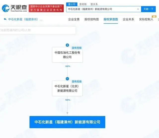 近日,中石化新星(福建漳州)新能源有限公司成立,法定代表人为张洪昌,注册资本4900万元人民币,经营范围含风力发电技术服务、太阳能发电技术服务、储能技术服务、发电技术服务等。股权全景穿透图显示,该公司由中石化新星(北京)新能源有限公司全资持股,后者为中国石化全资子公司。