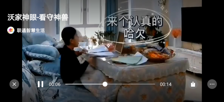推文很快突破10万+,网友纷纷留言“每天都能看到不在身边的父母是一件多么幸福的事情”“老爷子挠头那一下好可爱,我也想我的父母了”“科技拉进亲人的距离”……还有网友发问,“这样‘聪明’的监控摄像哪里可以买到?我也想每天都能看到我的父母,趁他们不注意说说话逗逗他们。”其实,联通的“沃家神眼”就能完全满足网友的上述需求,还有更多令人惊喜的“彩蛋”。