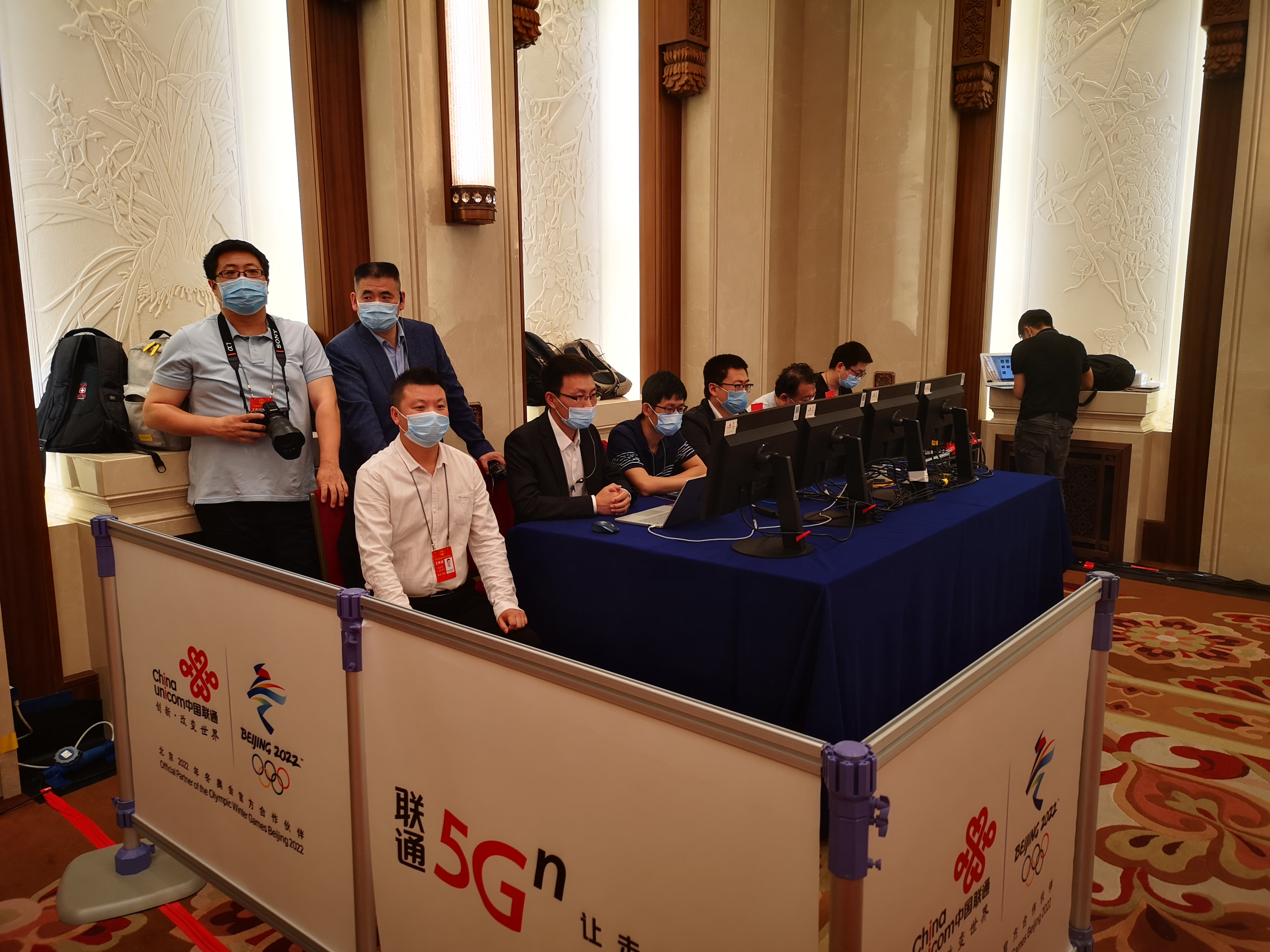 位于大会现场的大屏幕显示采用了最新一代Umini LED显示屏,系统集成了IoT控制、HDR显像、5G数据传输、智能维护等前沿视频技术。通过大屏视频交互方式,可实现大会堂新闻发布厅和梅地亚多功能厅全场景、全画面展示。为确保画面清晰稳定,中国联通采用业界最先进的4K超高清视频采集,高画质、低延时的全带宽NDI标准编解码,一主三备光纤多路由链路传输,超高清视频互动和多声道音频同传交流等多项技术,确保视频会议平稳进行。据实地测试,通过位于主席台的大屏幕,与会人员可清晰地看见每一名现场记者,同时大屏幕也可实现对提问记者的快速特写抓取。
