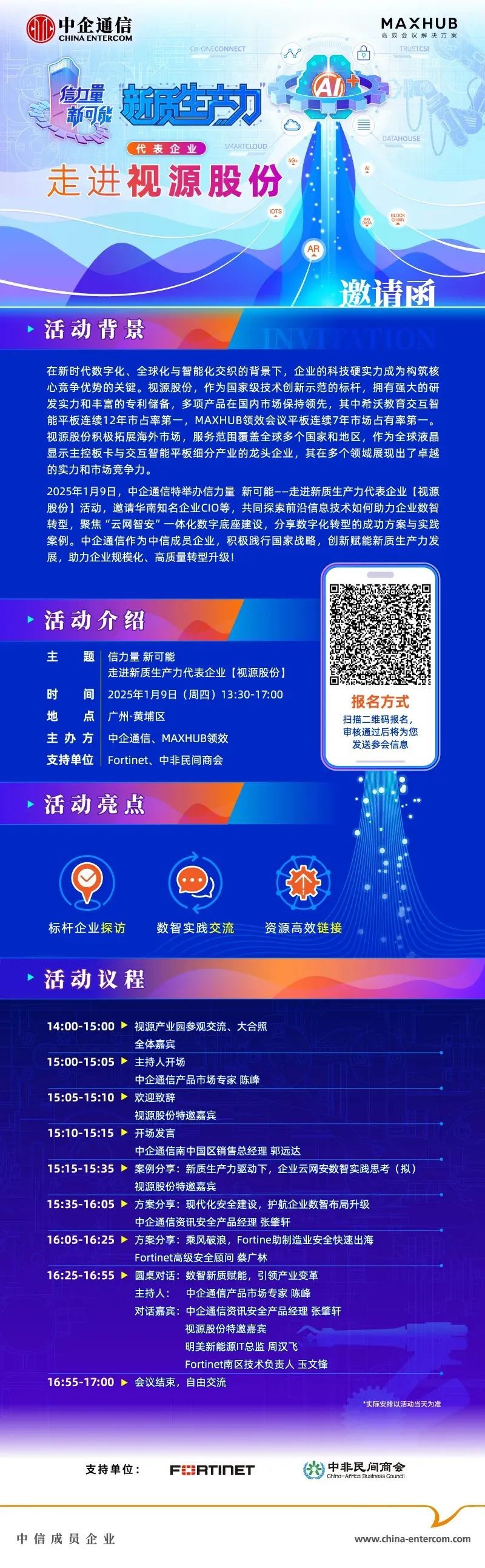2025年1月9日,在中企通信联合MAXHUB领效举办的信力量 新可能——走进新质生产力代表企业【视源股份CVTE】活动上,您将找到答案!