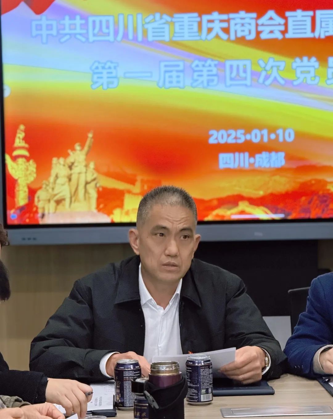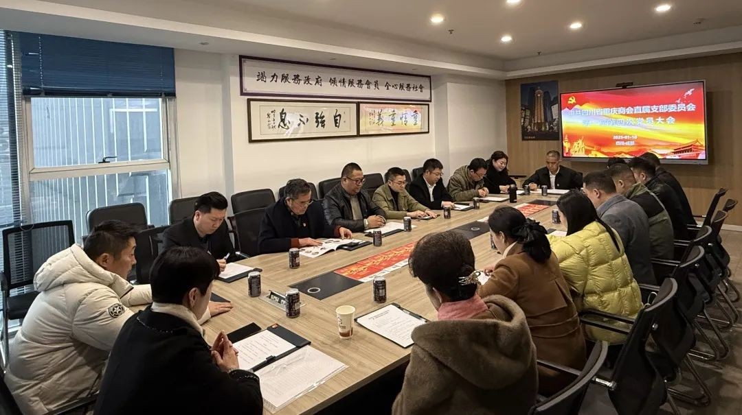 1月10日,四川省重庆商会直属党支部在商会秘书处会议室举行第一届第四次党员大会。商会党委副书记、直属党支部书记谭国军,秘书长高玄波,党委委员、直属党支部副书记黄庭婷,党委委员、直属党支部组织委员黄永富,宣传委员饶志念、顾问臧雷、副会长王少良、廖秋元,以及副秘书长邓军军、兼职副秘书长李忠琼等党员、预备党员、发展对象、入党积极分子参加会议。会议由谭国军主持。
