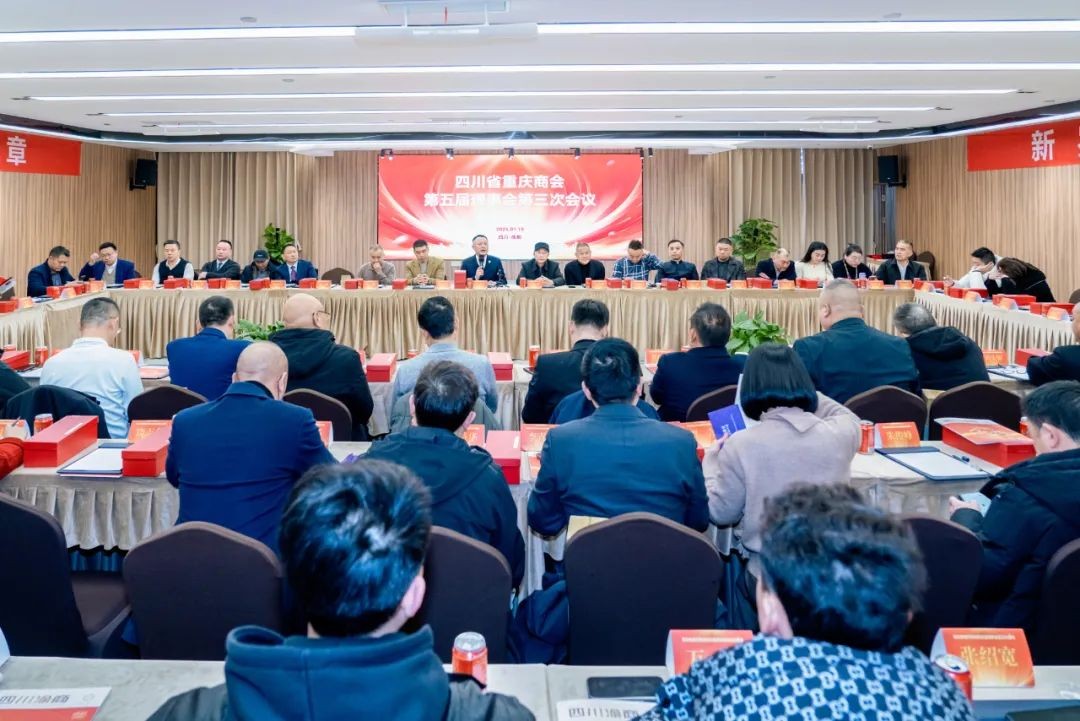 1月10日,四川省重庆商会在会长单位星瑞集团旗下星瑞仁家酒店举行第五届理事会第三次会议。商会会长吕状文、监事长杨和平、执行会长廖义全,常务副会长冯永刚、唐果、石明东、吴俊、李正雄、陈根平、黄永富、李宗华、邵春(代表)、张荣策、杨勇、刘冠男(代表)、罗建、王林跃、邓繁荣,秘书长高玄波,党委副书记、直属党支部书记谭国军,副会长曾跃祺、戎建华、游江、敖祖东、吴易峰、黄幻、葛道奉(代表)、易守达、何贵友(代表)、朱荣波、蔡佳良、谭闰元、谭先彬、于道华、廖秋元、王少良、彭自学、谢民、胥涛、赵勇(代表)、余俊龙(代表)、谭达双(代表)、彭长远、刘文胜(代表)、黎建军、万鹏(代表)、陈秀伟、朱玉阳、刘海连,理事李青松、王益华、黄庭婷、陈柯伍、饶志念、覃言、张绍宽(代表)、邹小春、朱俊峰、刘道清、蒋承孝、高纯政、向俊蓉、李在新,以及副秘书长邓军军、兼职副秘书长李忠琼、傅丽莉参加或列席会议。会议由吕状文主持。